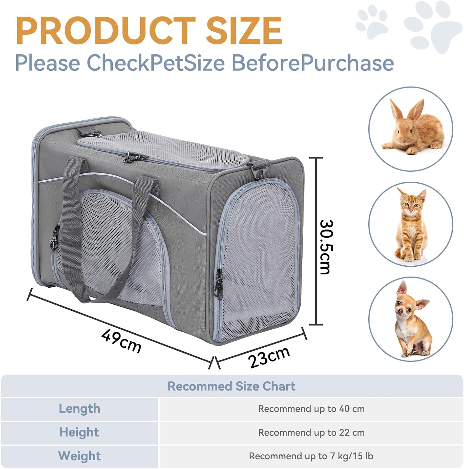• Дизайн, подходящ за полет: чантата за транспорт на котки отговаря на изискванията на повечето авиокомпании (55 x 40 x 23 см). Моля, потвърдете точните размери (49 x 23 x 30,5 см) преди полет. Подходяща за домашни любимци до 7 кг. Моля, измерете размера, дължината и теглото на нослето на котката преди покупка, за да изберете удобна чанта за нея.