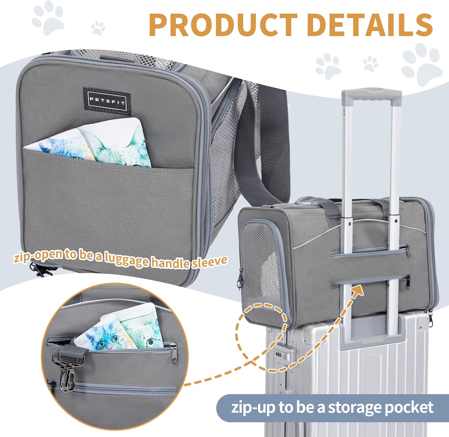 Транспортна чанта Petsfit за котки и кучета, чанта за самолет | Чанта за полет за кучета и транспортна кутия за котки | Чанта за домашни любимци, подходяща за полет | Безопасен транспорт в кола, самолет и влак, M/Сив