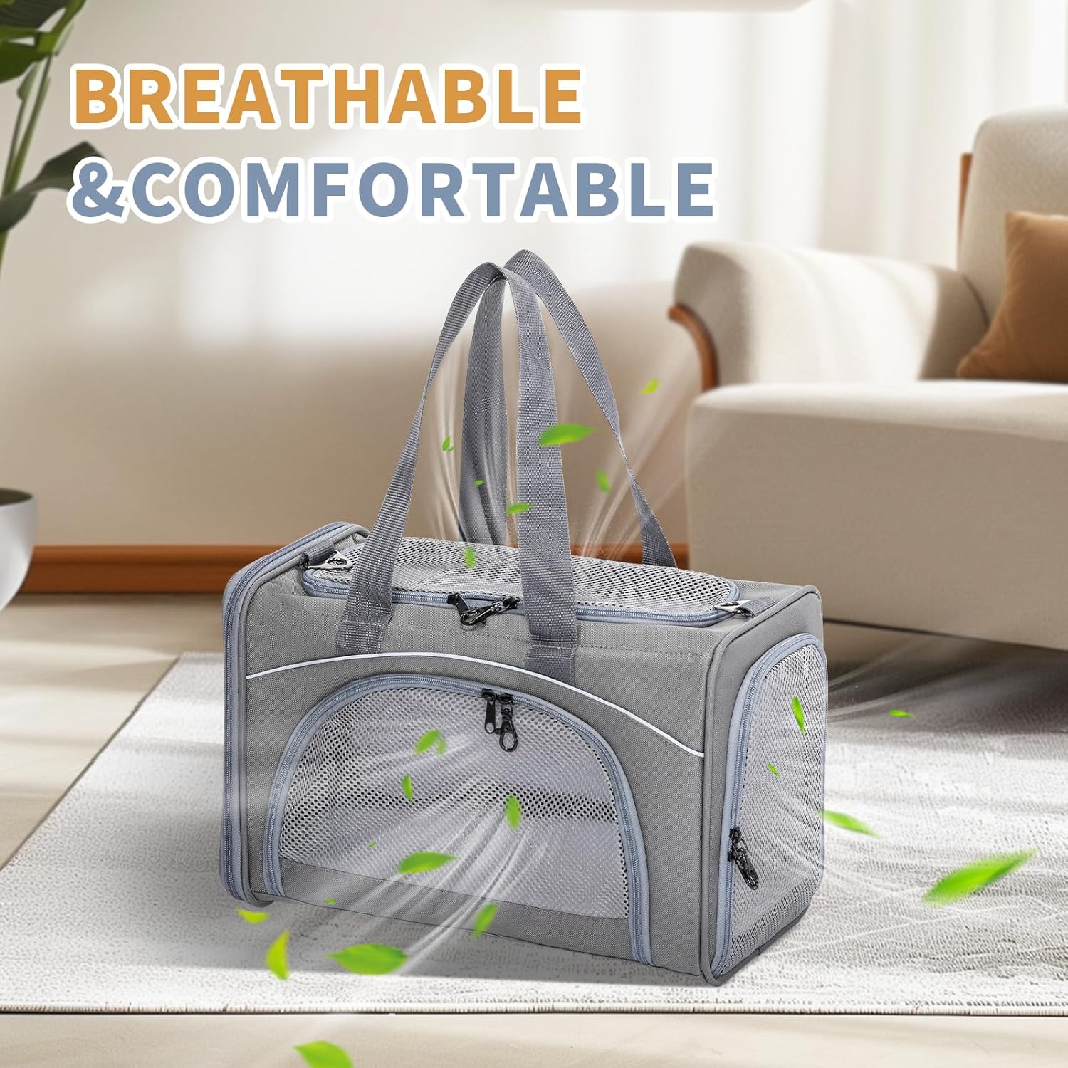Транспортна чанта Petsfit за котки и кучета, чанта за самолет | Чанта за полет за кучета и транспортна кутия за котки | Чанта за домашни любимци, подходяща за полет | Безопасен транспорт в кола, самолет и влак, S/Сив