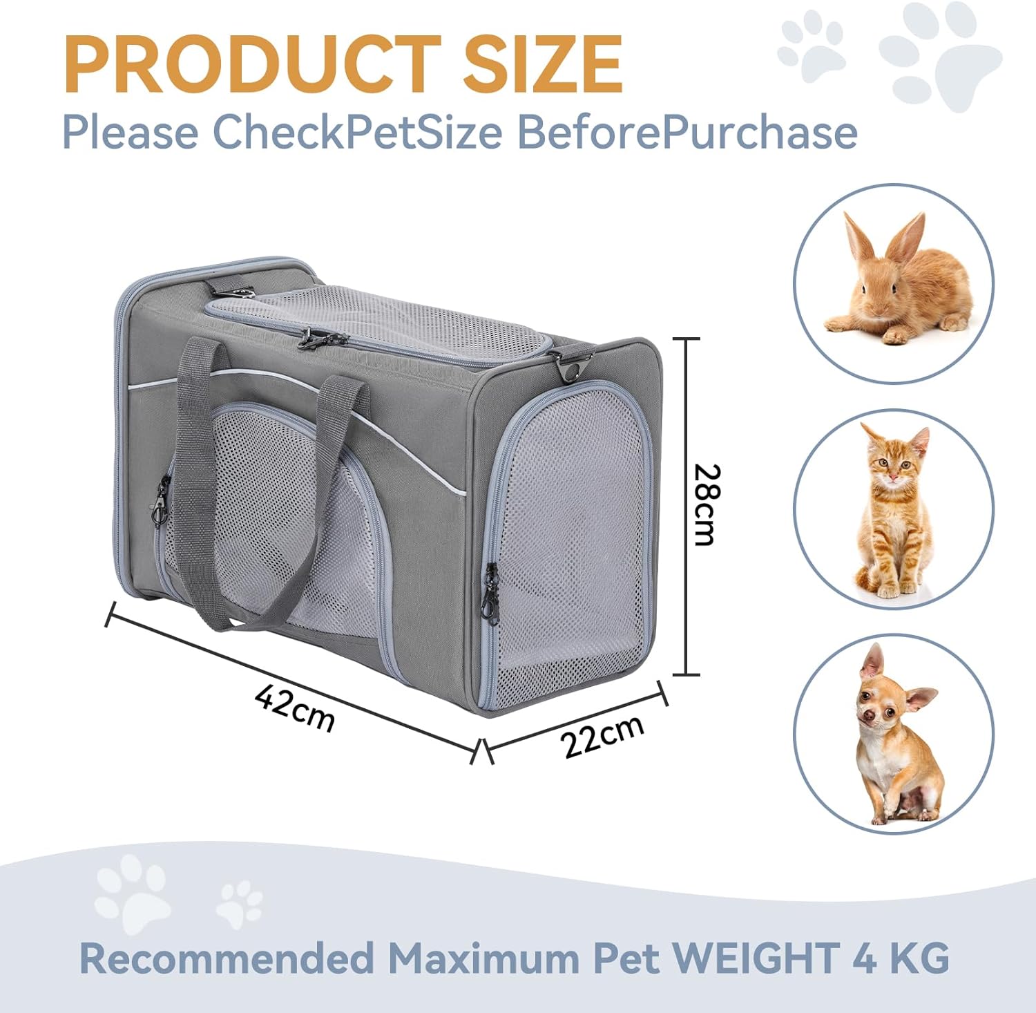 Моля, измерете размера на вашия домашен любимец преди покупка, за да можете да изберете удобна преносима кутия за него.