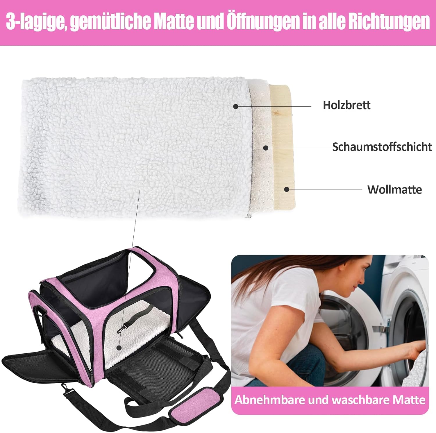 This cat carrier is a great companion for outdoor use, for example when hiking or travelling with pets. You have enough space to lie down, get up, change position and feel less constricted.