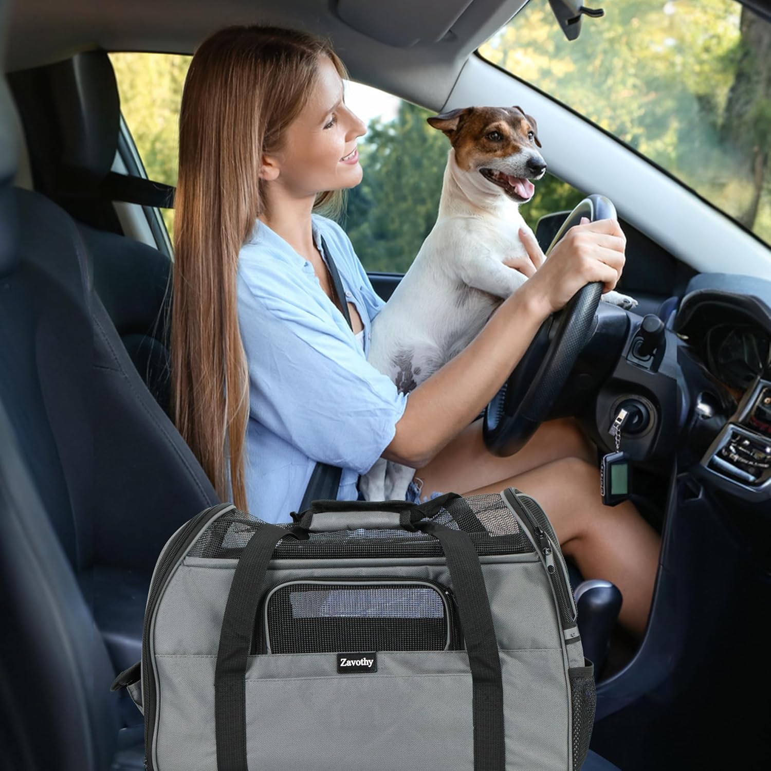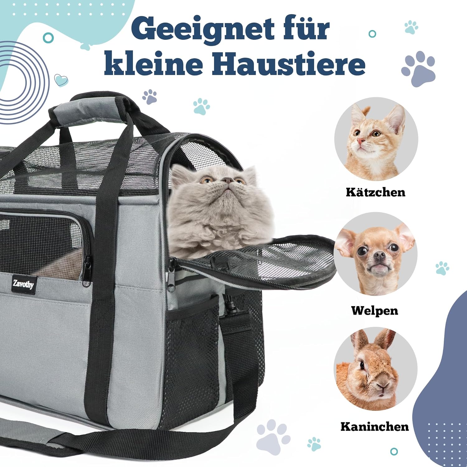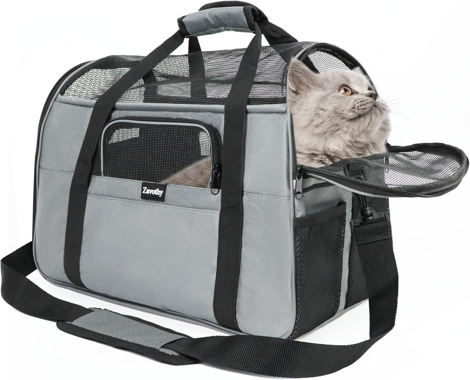 Транспортна чанта за котки и кучета Zavothy, дишаща и сгъваема, транспортна кутия за котки с регулируема презрамка, подвижен плюшен матрак (сива, M)