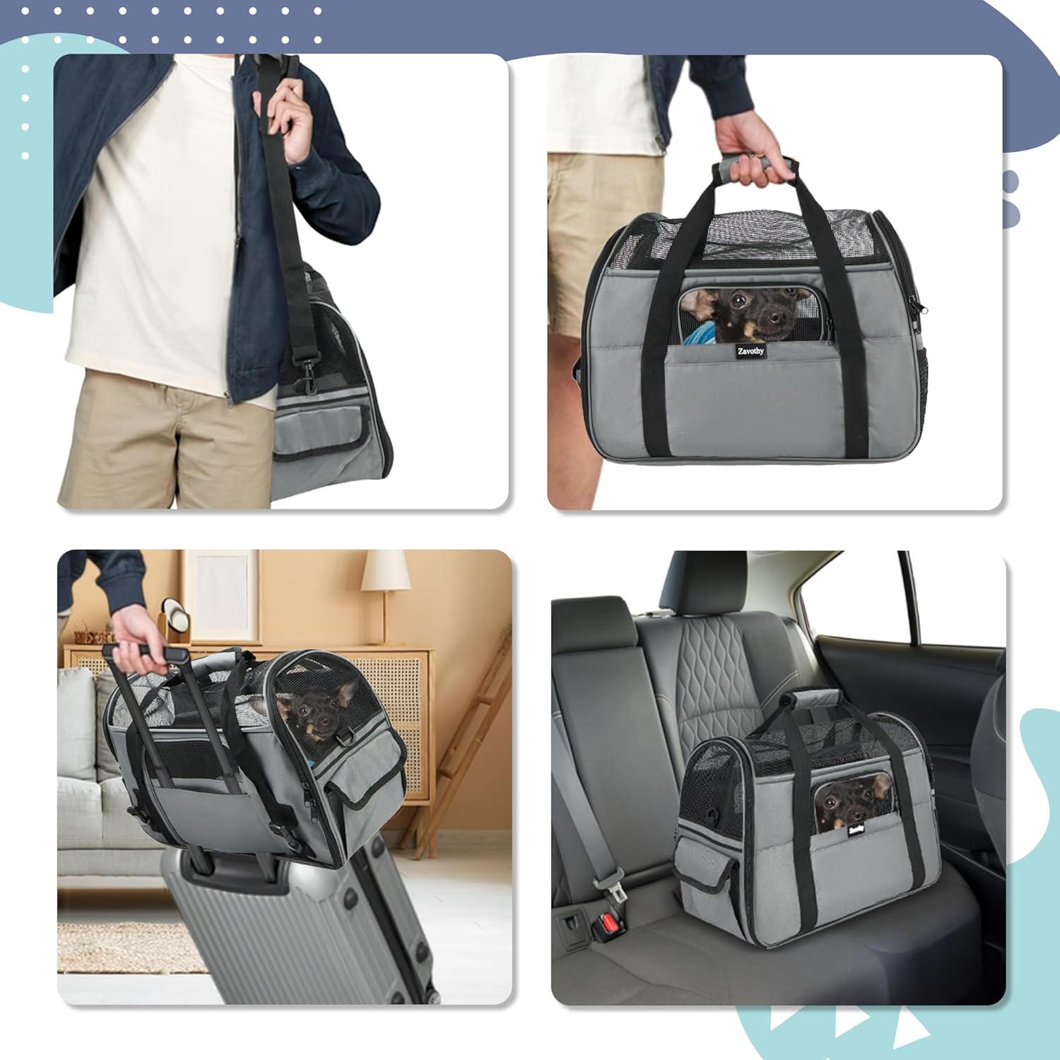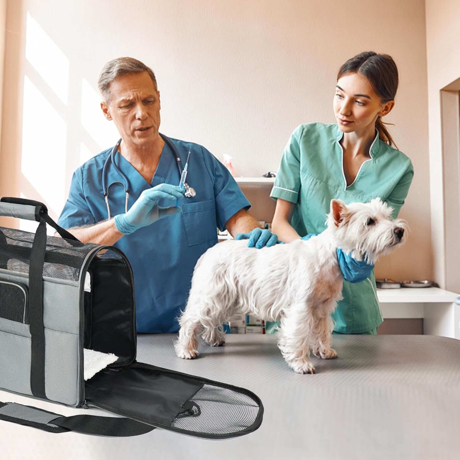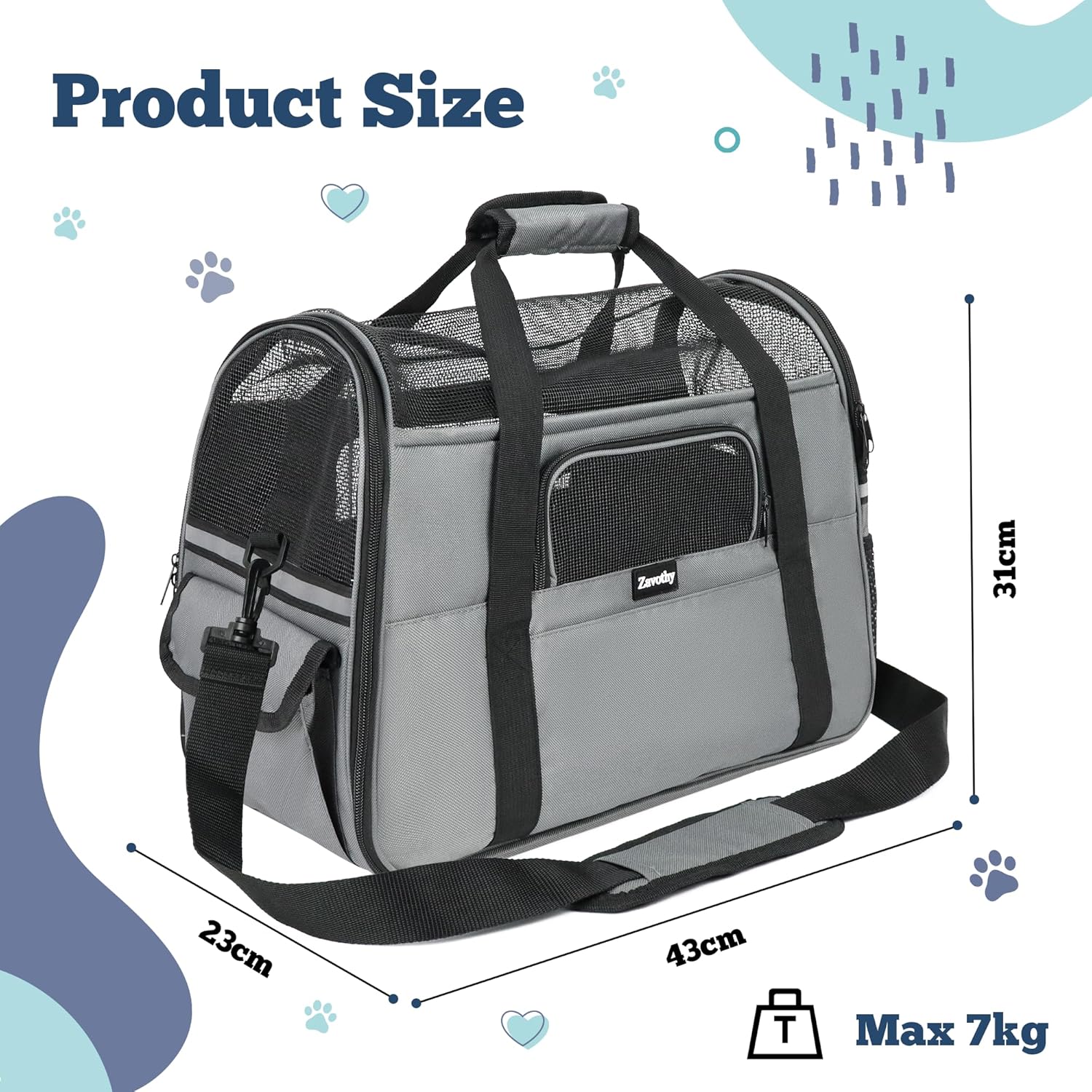 Транспортна чанта за котки и кучета Zavothy, дишаща и сгъваема, транспортна кутия за котки с регулируема презрамка, подвижен плюшен матрак (сива, M)