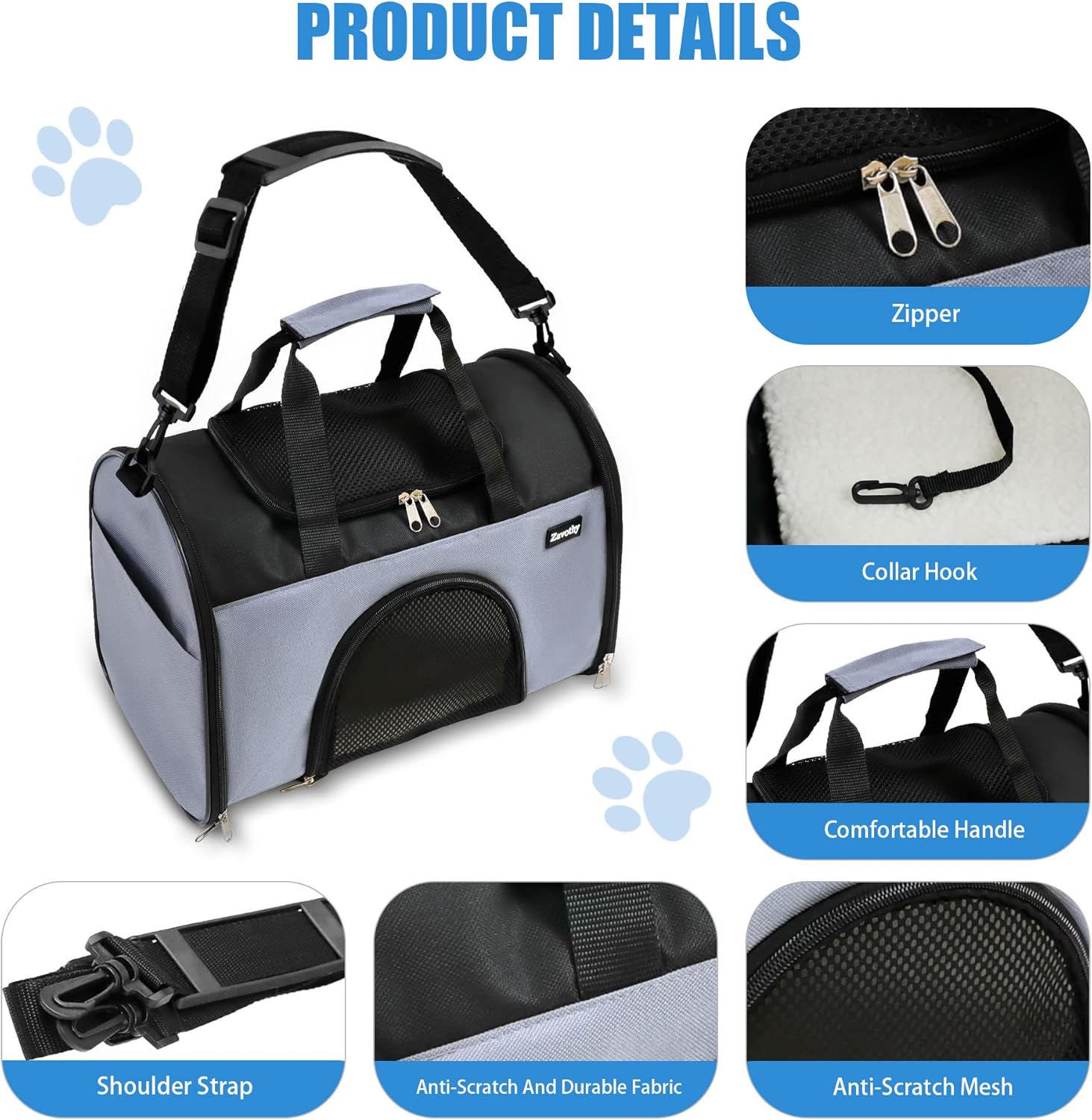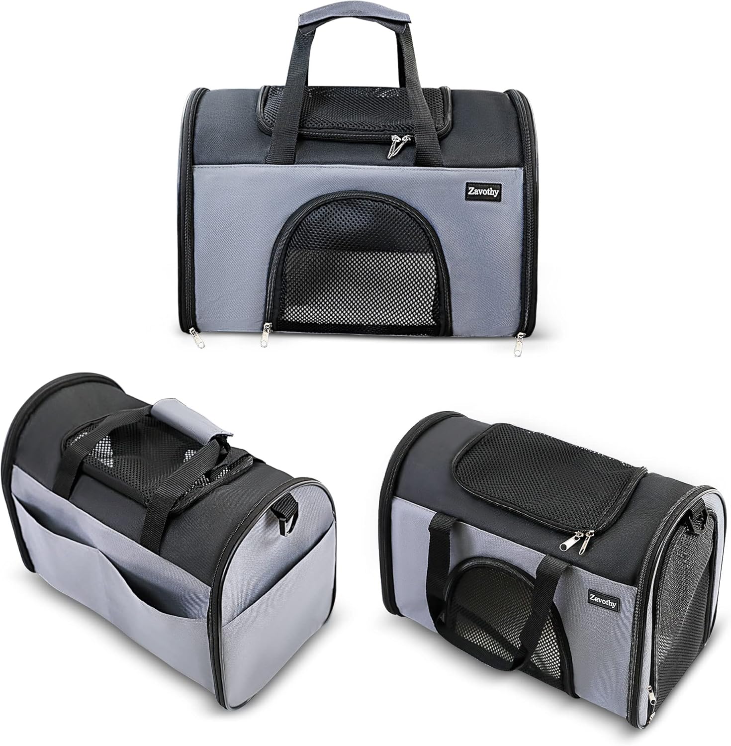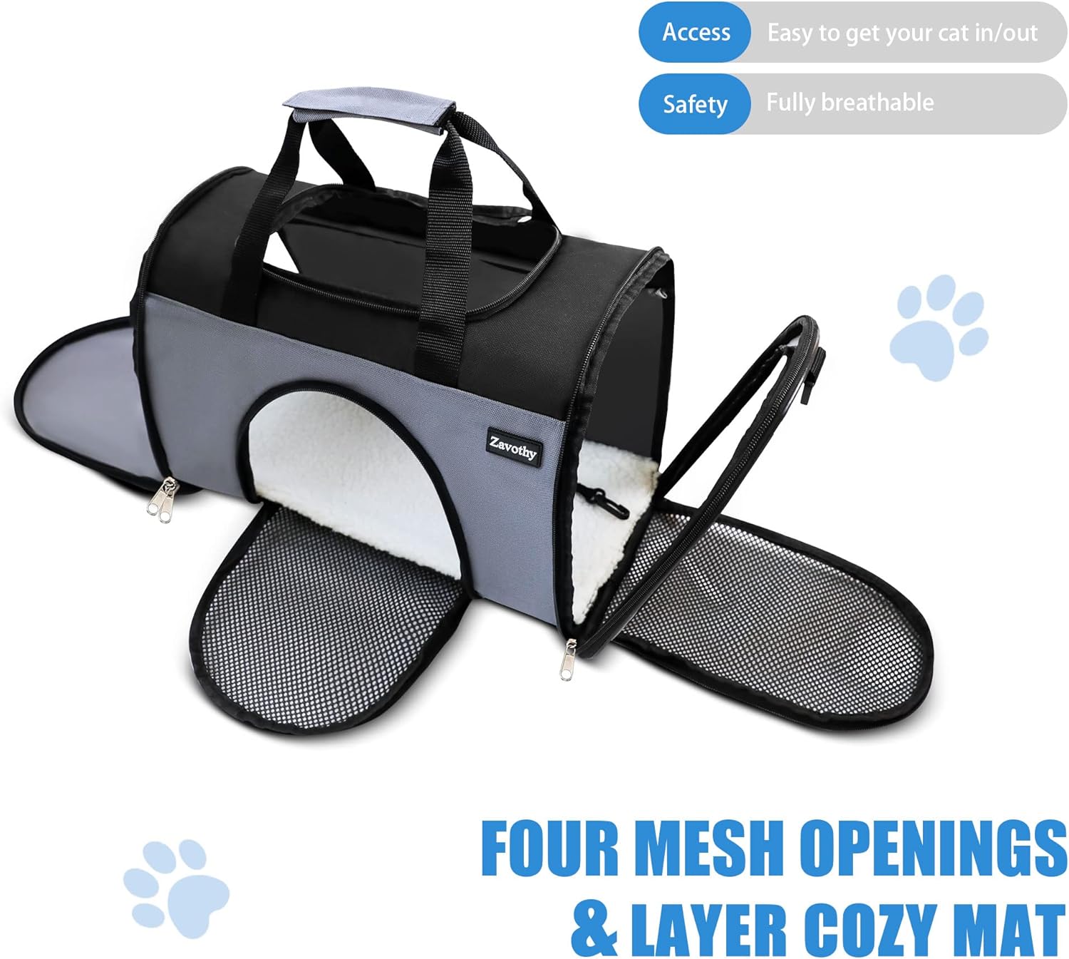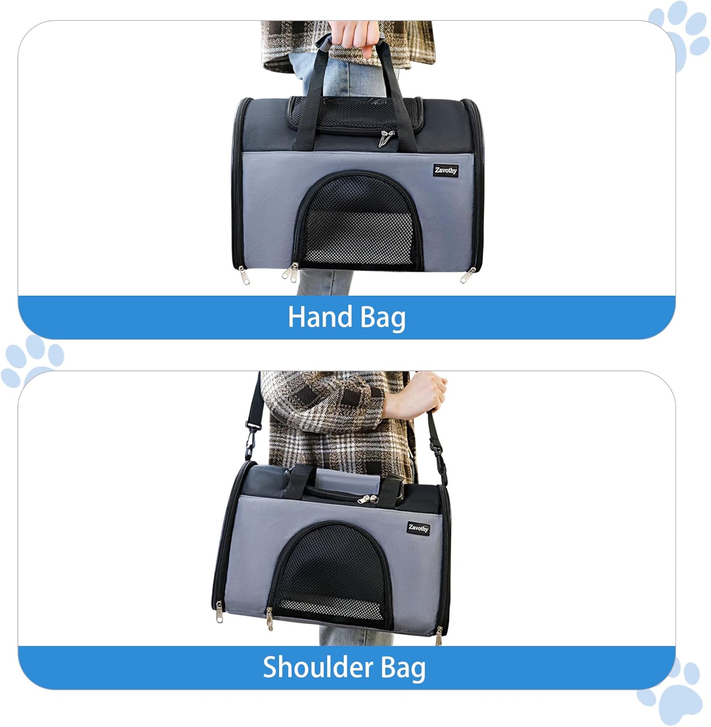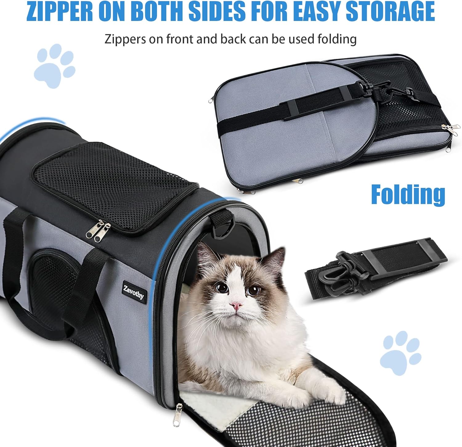 Транспортна чанта за котки и кучета Zavothy, дишаща и сгъваема, транспортна кутия за котки с регулируема презрамка, подвижен плюшен матрак (сива, S)