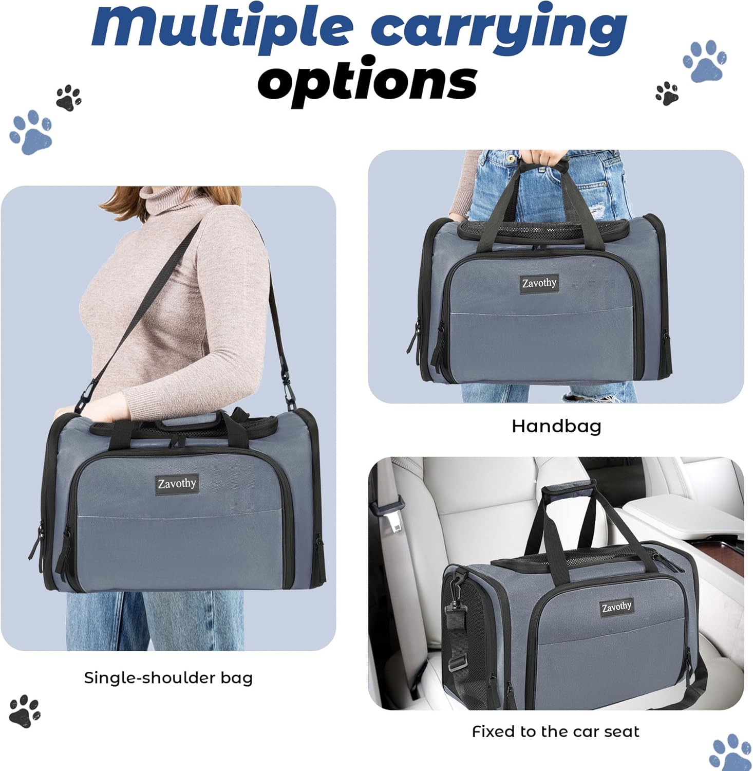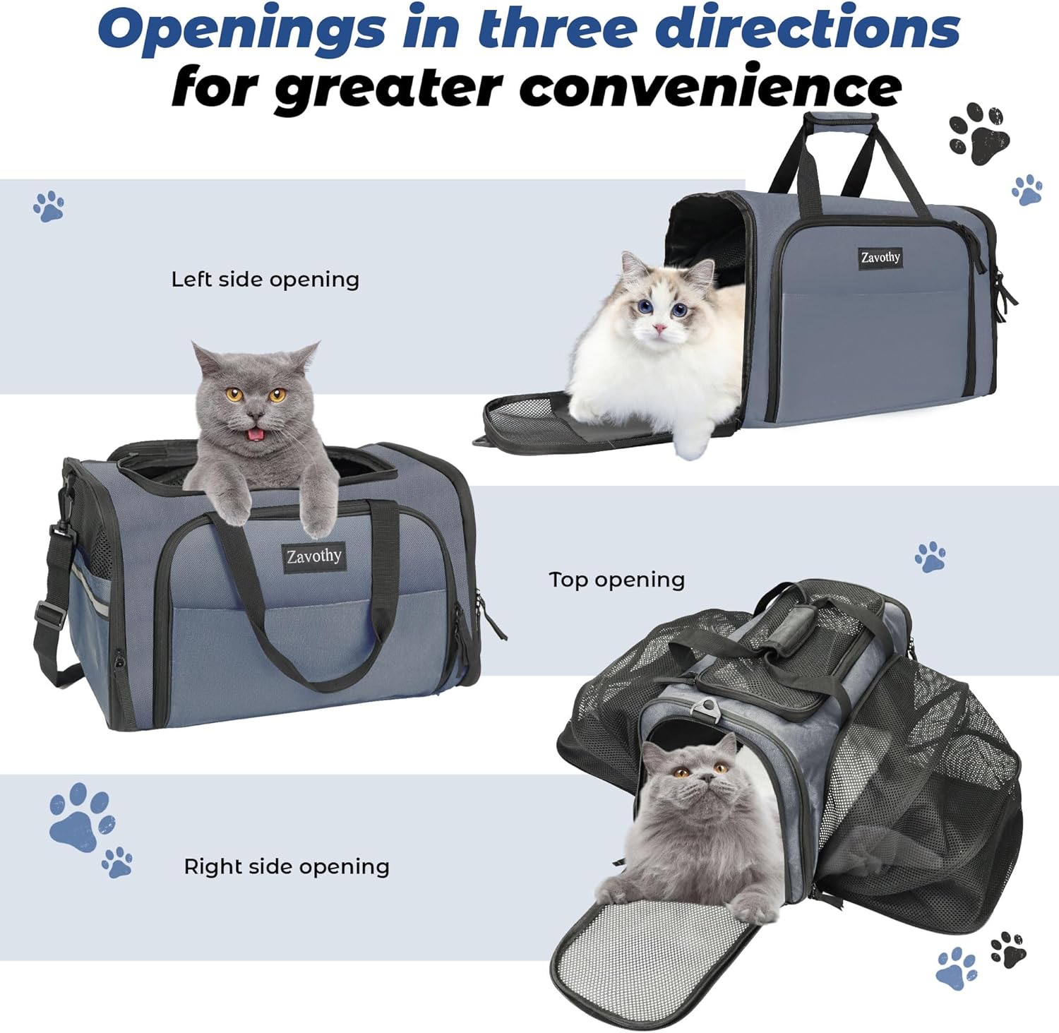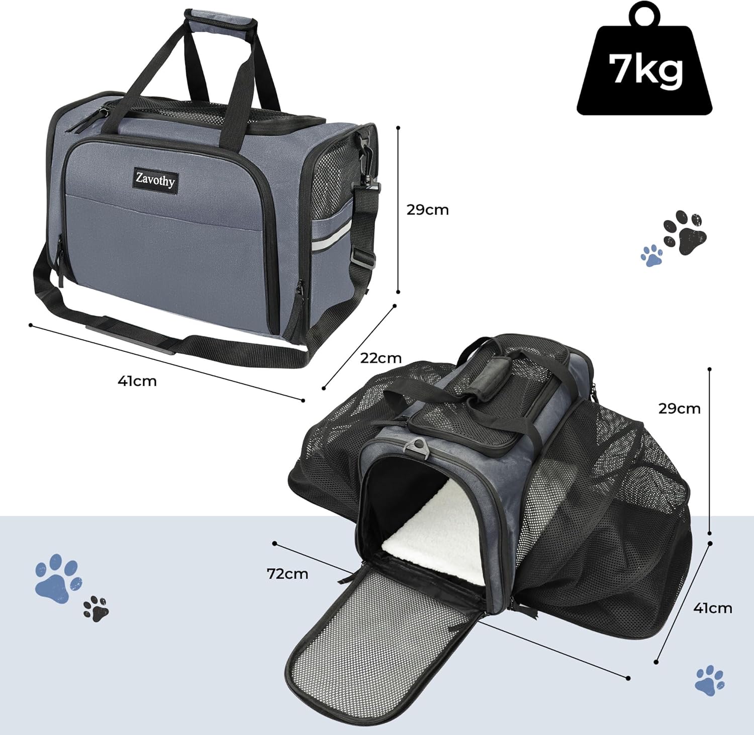 Транспортна чанта за котки и кучета Zavothy, дишаща и сгъваема, транспортна кутия за котки с регулируема презрамка, подвижен плюшен матрак (сива, XL)