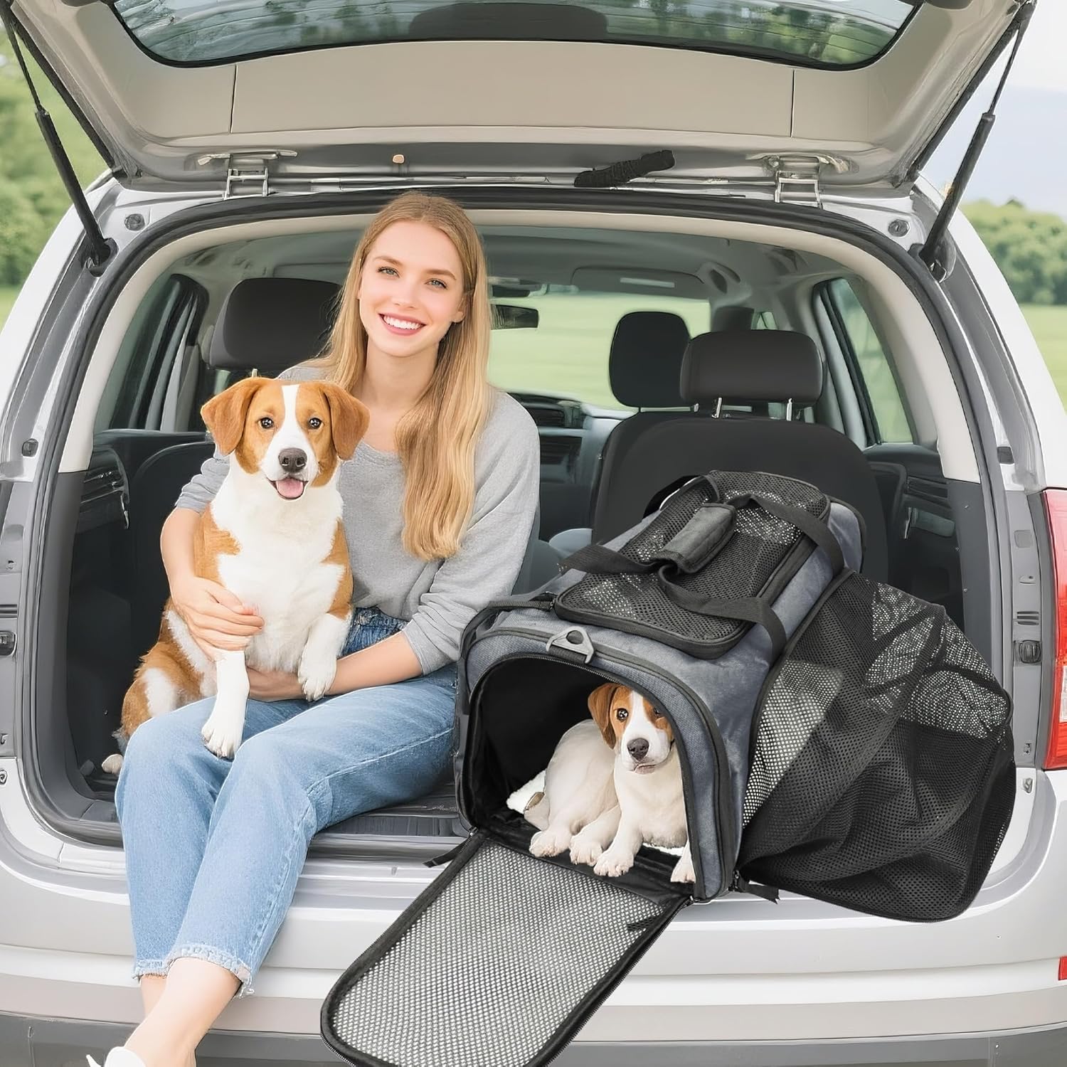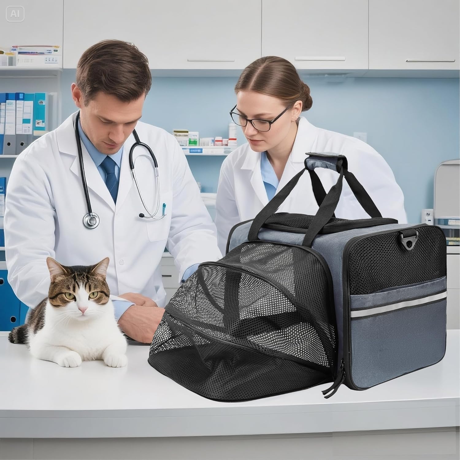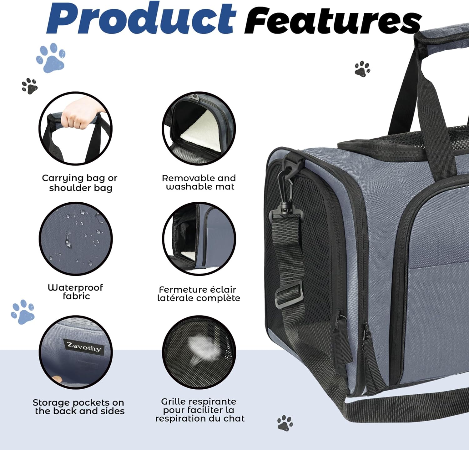 Транспортна чанта за котки и кучета Zavothy, дишаща и сгъваема, транспортна кутия за котки с регулируема презрамка, подвижен плюшен матрак (сива, XL)