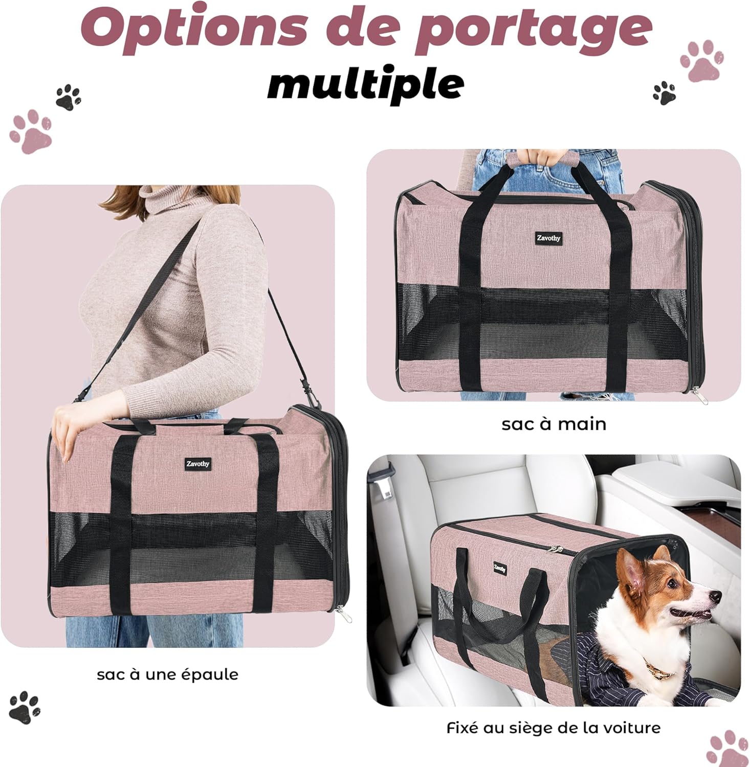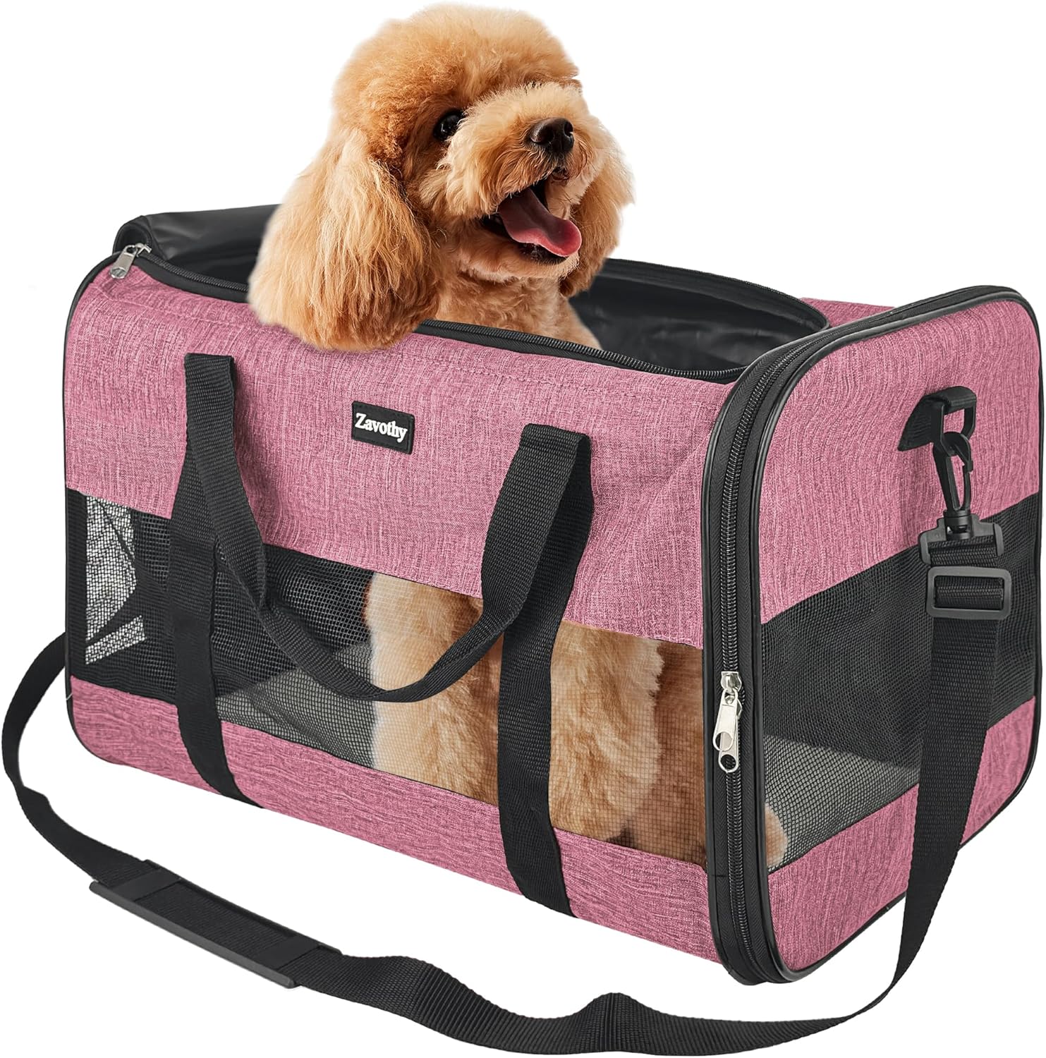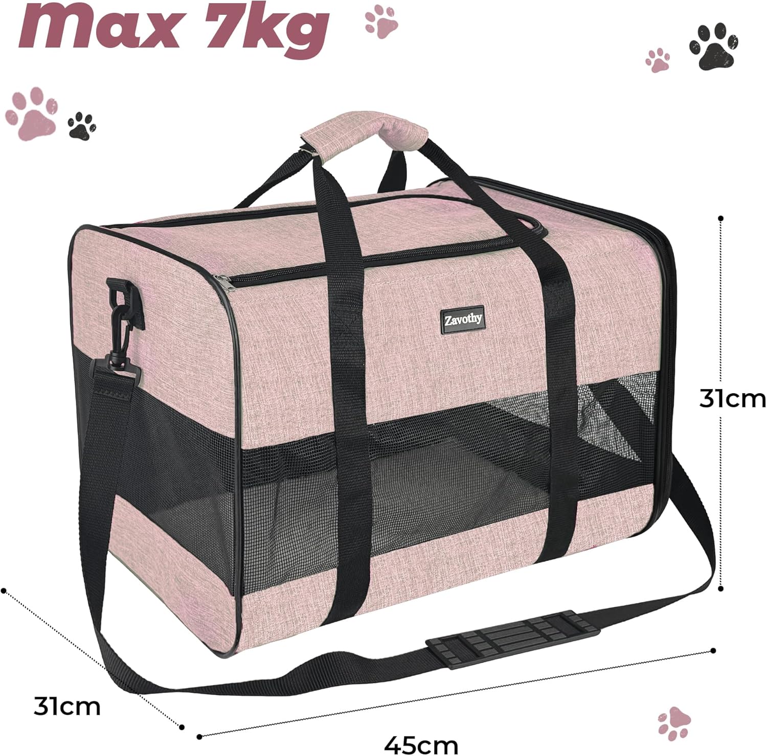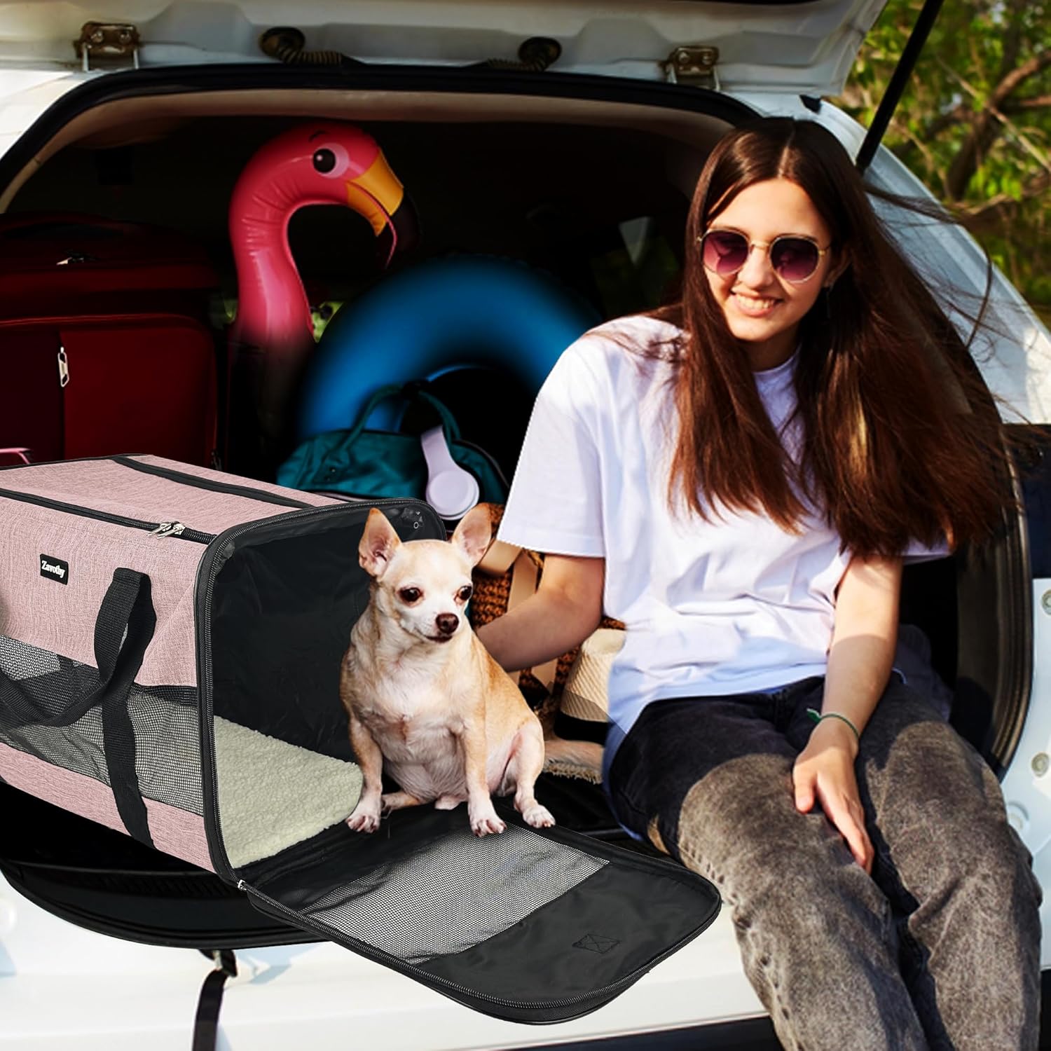 Транспортна чанта за котки и кучета Zavothy, дишаща и сгъваема, транспортна кутия за котки с регулируема презрамка, подвижен плюшен матрак (светло розово, L)
