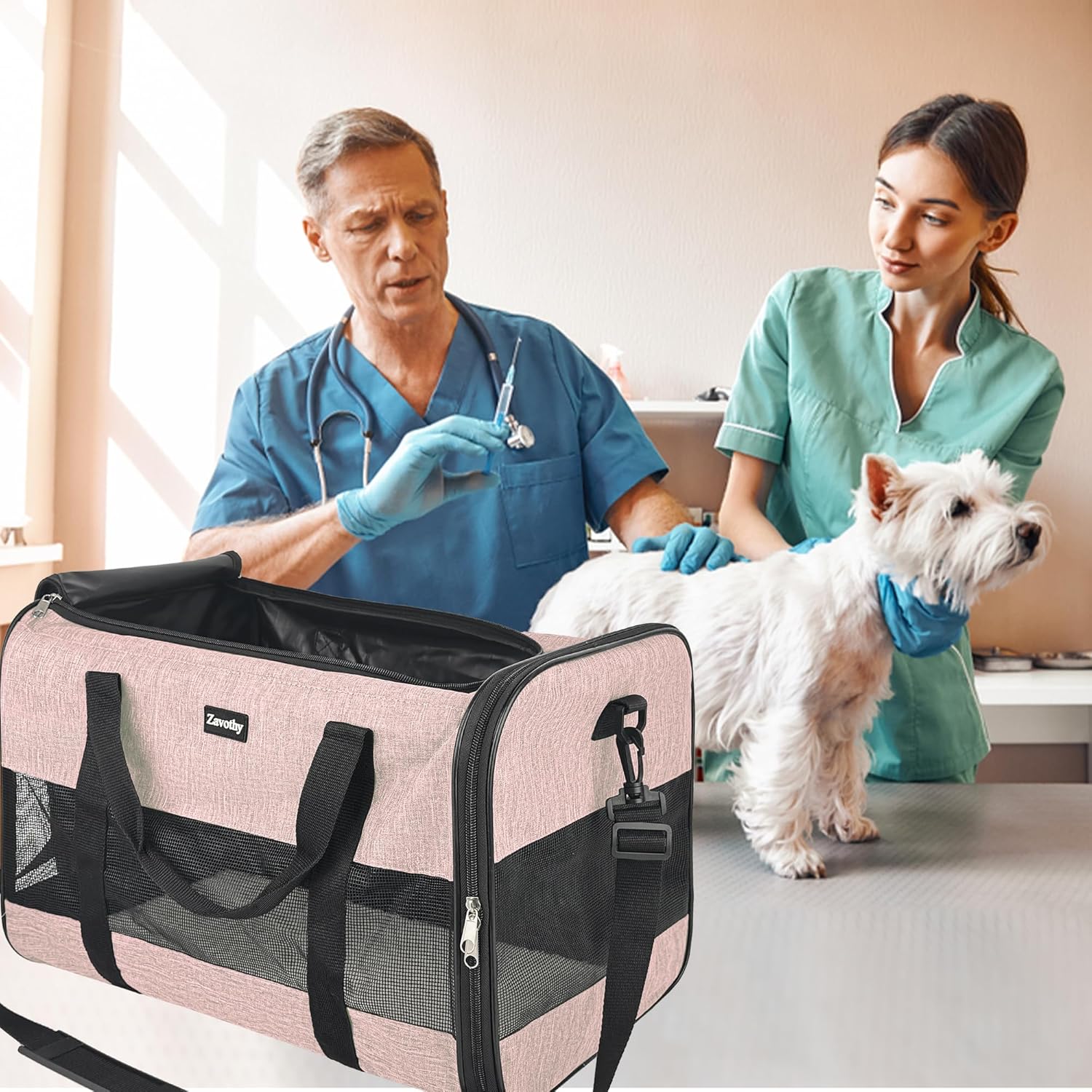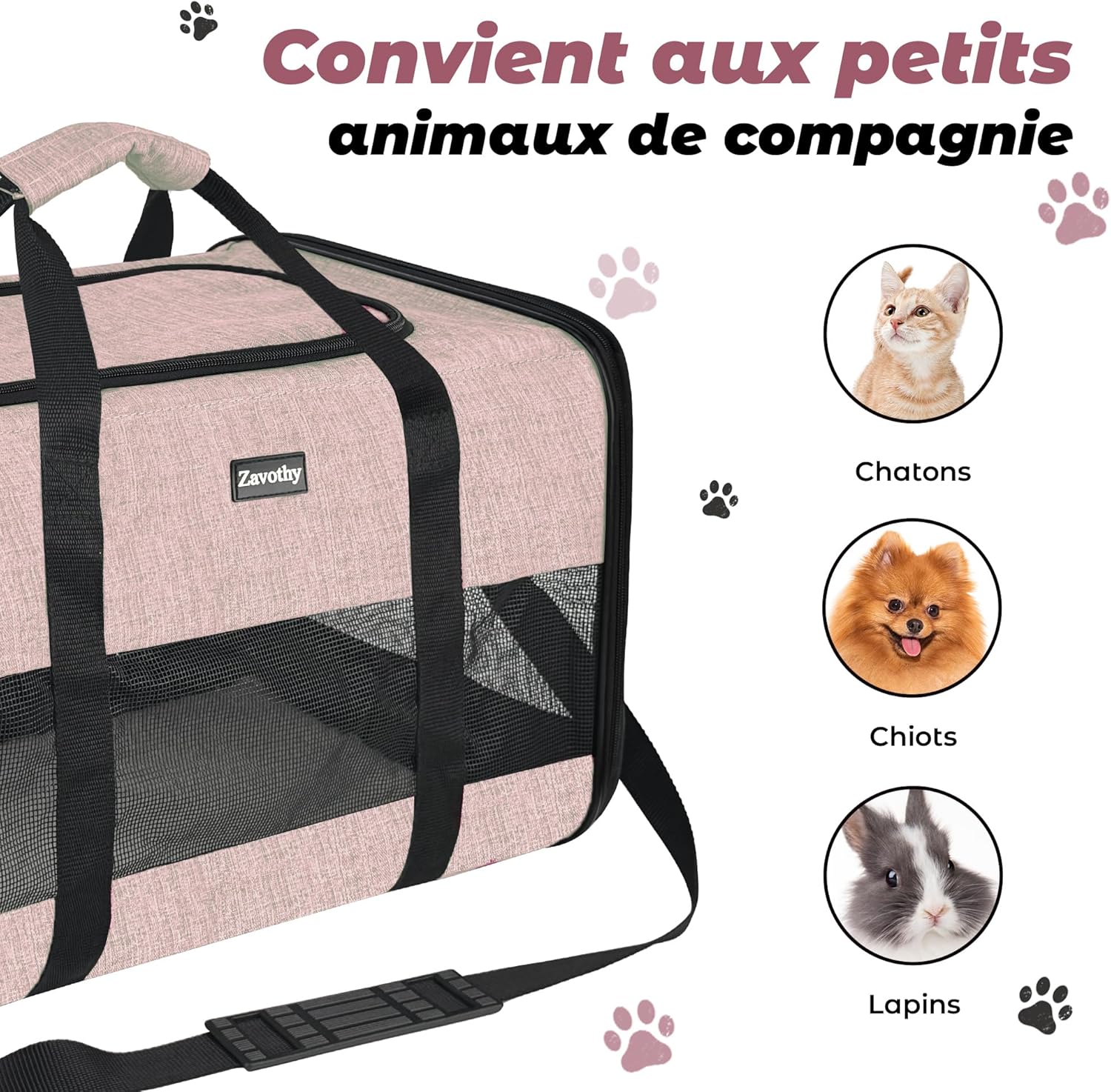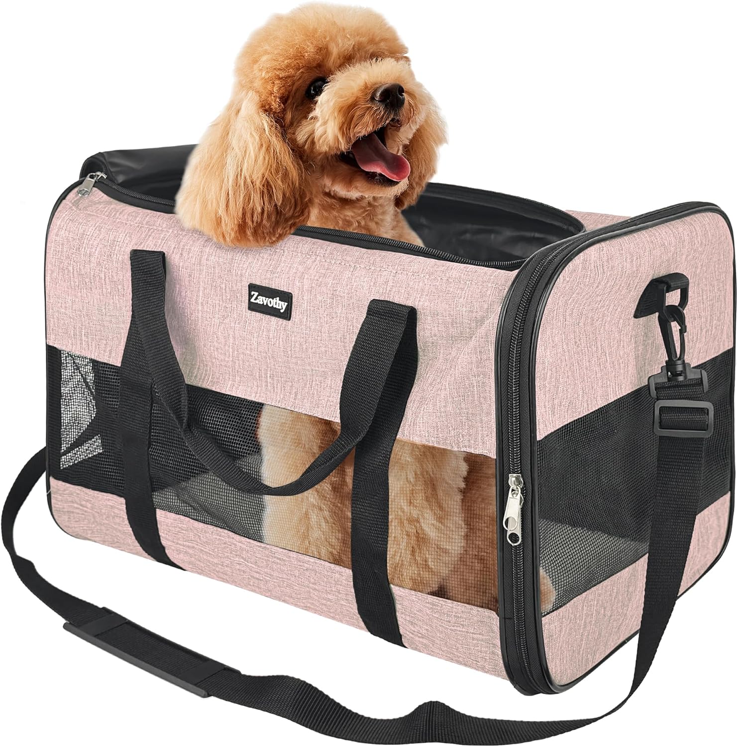 Транспортна чанта за котки и кучета Zavothy, дишаща и сгъваема, транспортна кутия за котки с регулируема презрамка, подвижен плюшен матрак (светло розово, L)