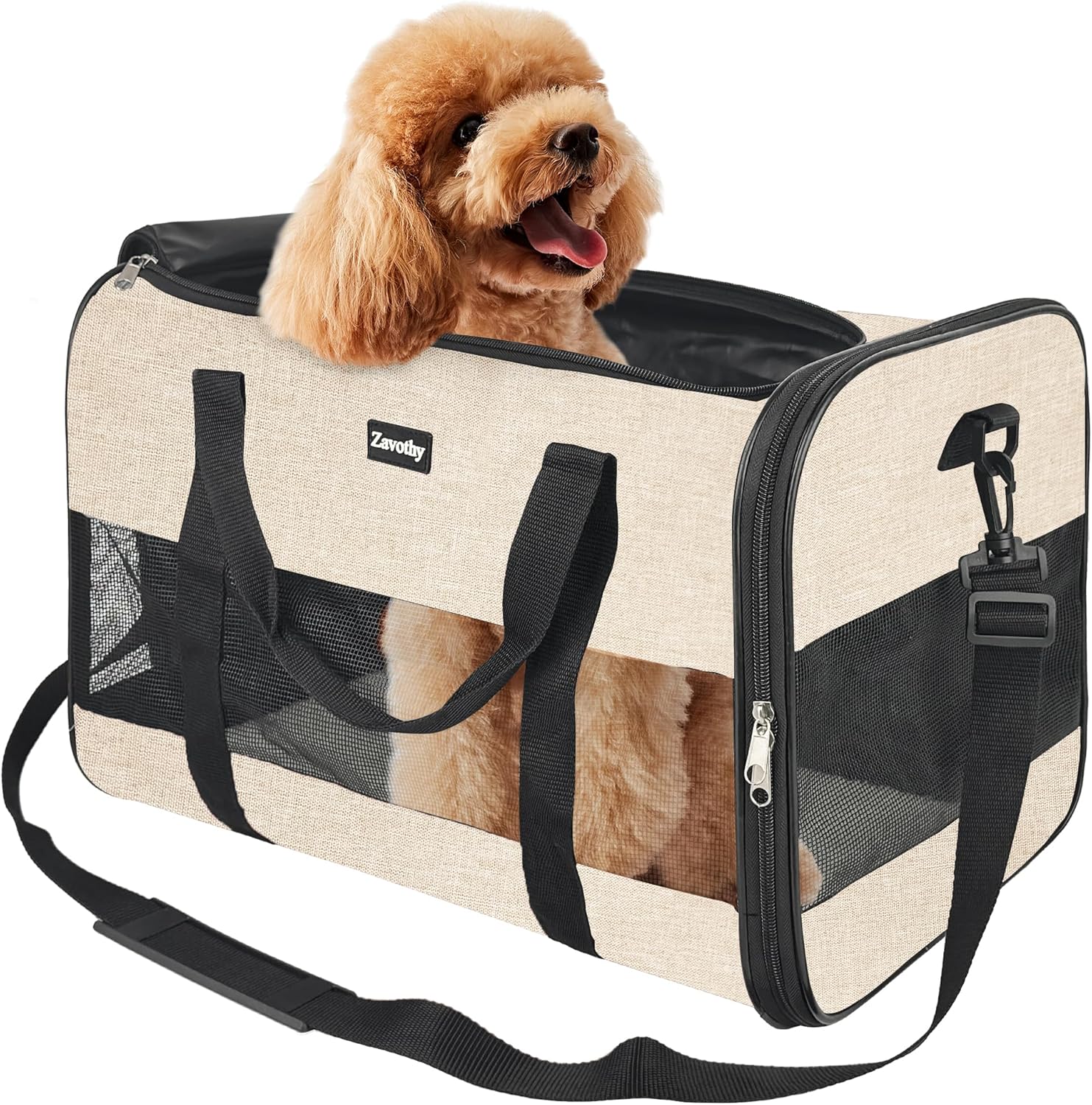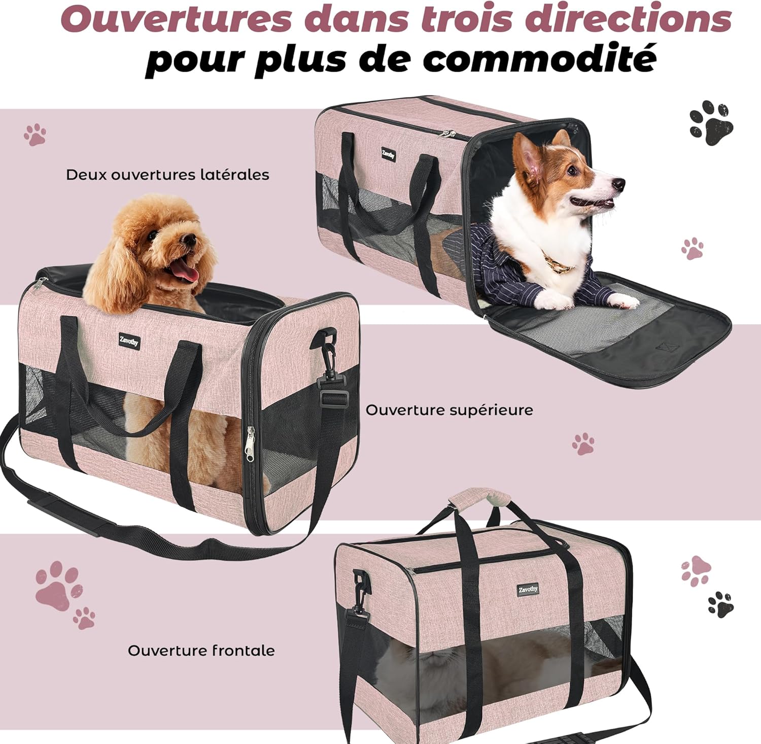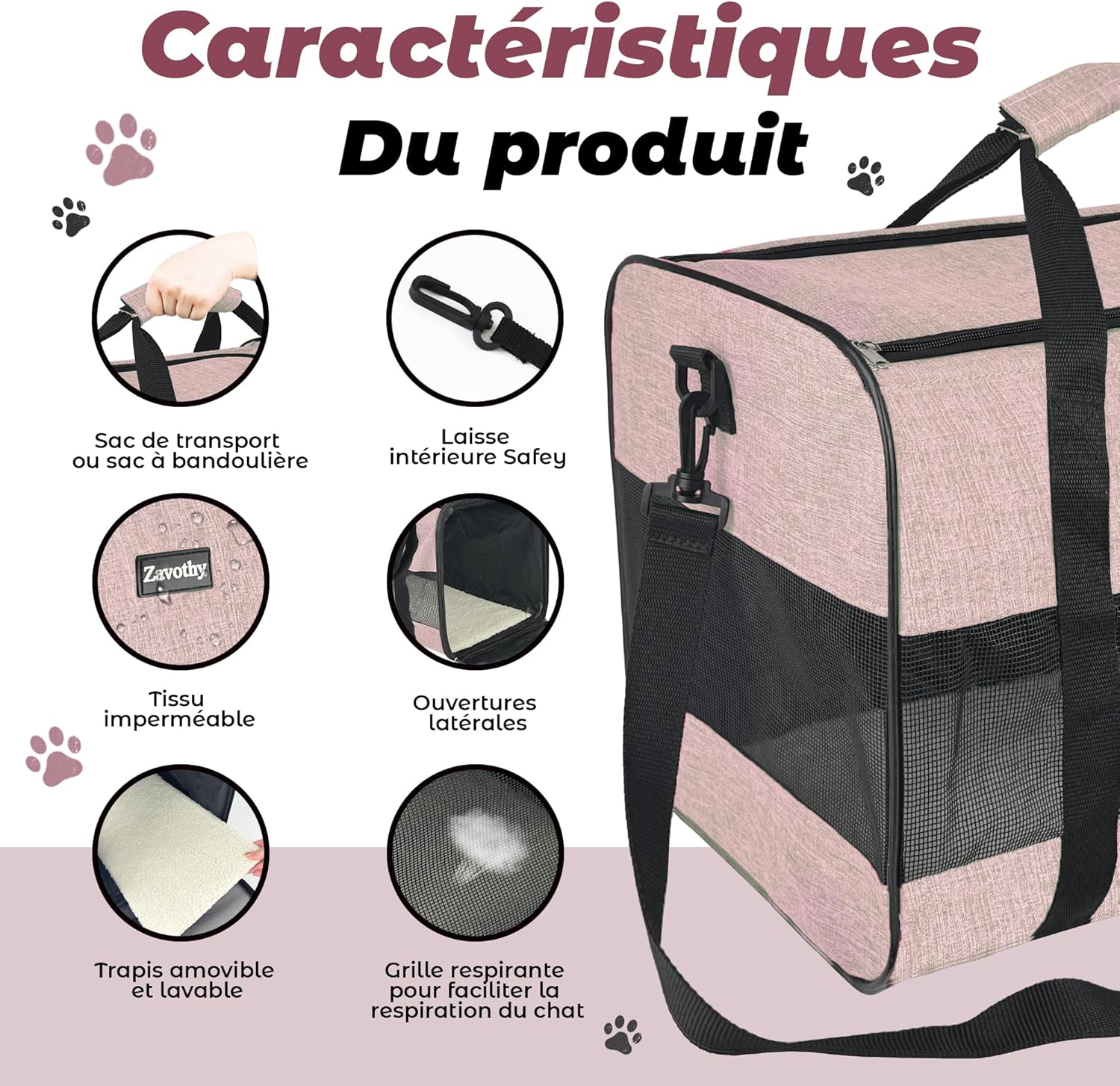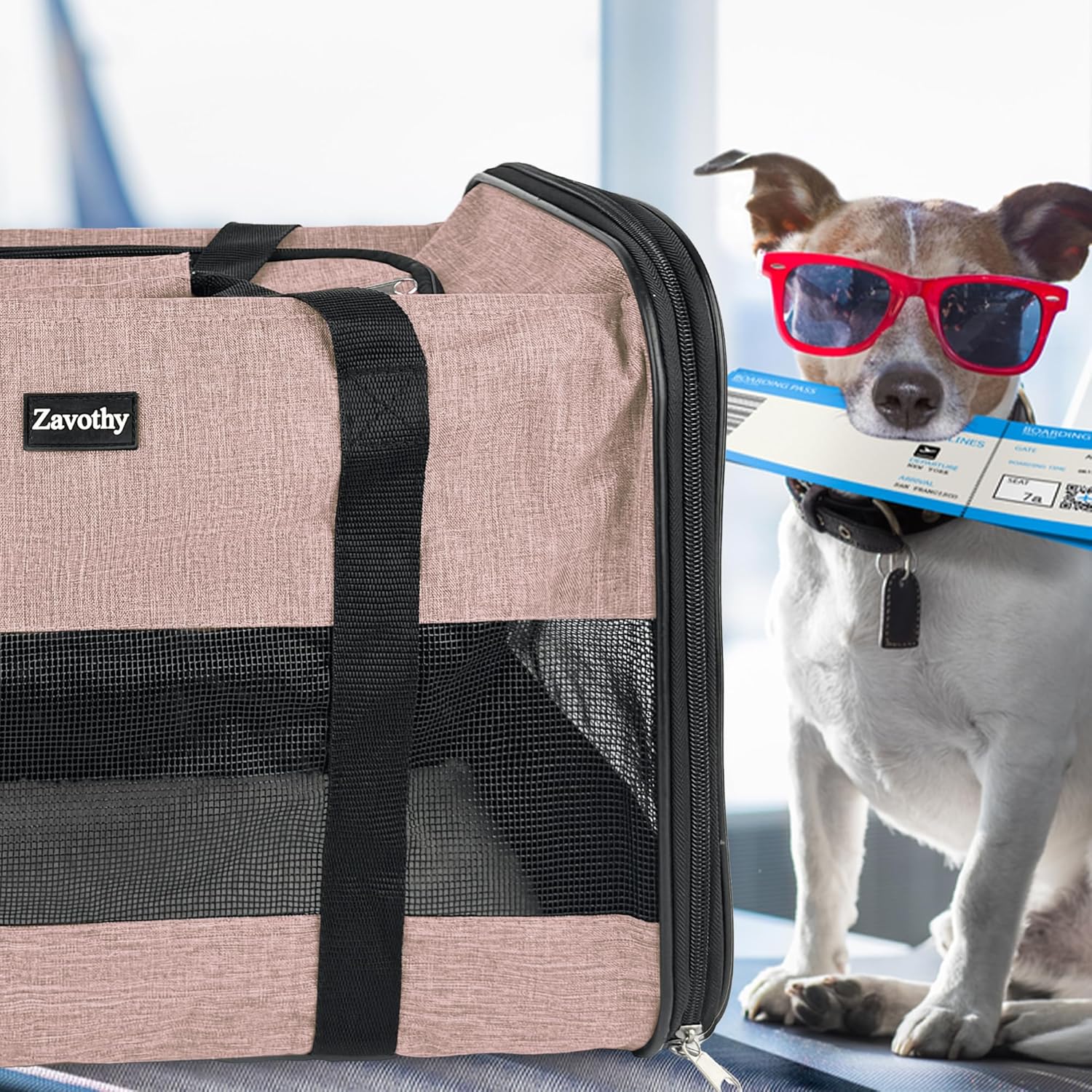 Транспортна чанта за котки и кучета Zavothy, дишаща и сгъваема, транспортна кутия за котки с регулируема презрамка, подвижен плюшен матрак (светло розово, L)