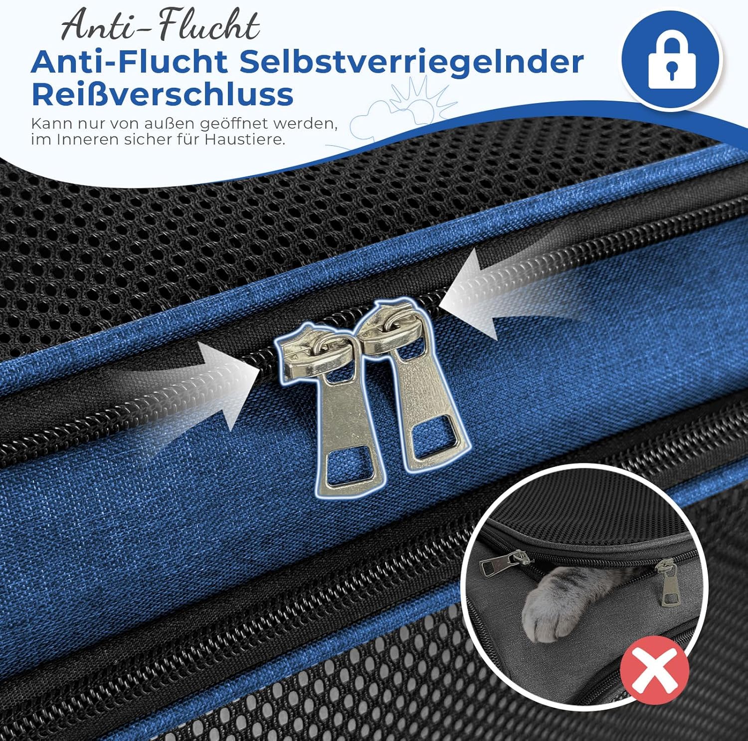This cat carrier is a great companion for outdoor use, for example when hiking or travelling with pets. You have enough space to lie down, get up, change position and feel less constricted.