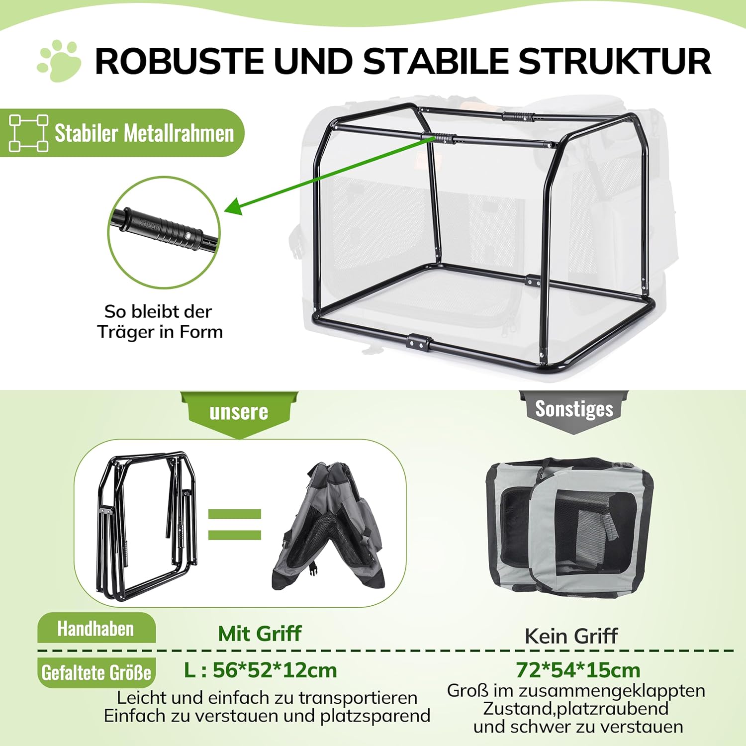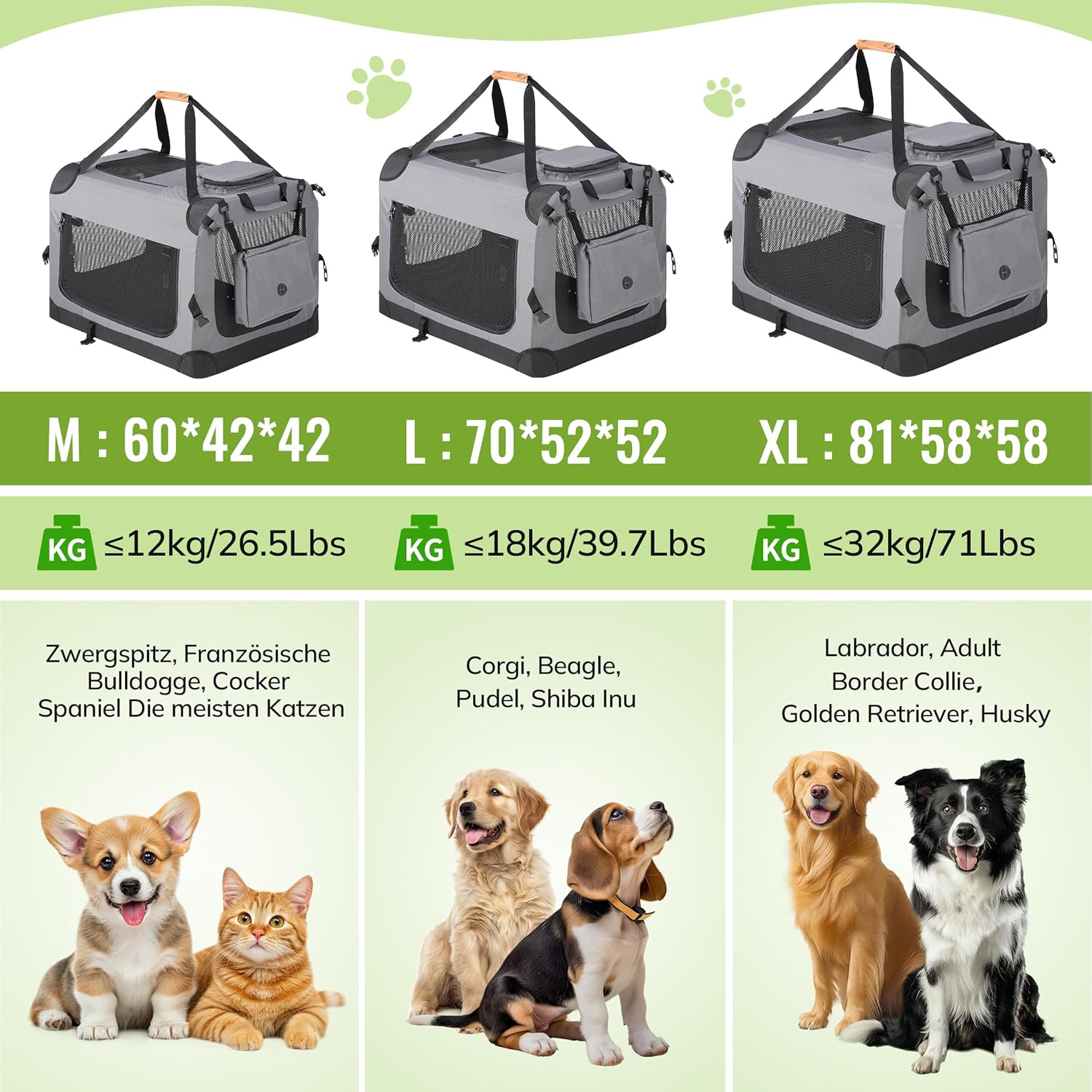 Транспортна кутия Morpilot за кучета и котки, чанта за транспортиране, размер L 70 x 52 x 52 см, кутия за кучета за кола, сгъваема кутия за транспортиране на кучета, здрава кутия за транспортиране на домашни любимци с купа за кучета и презрамка