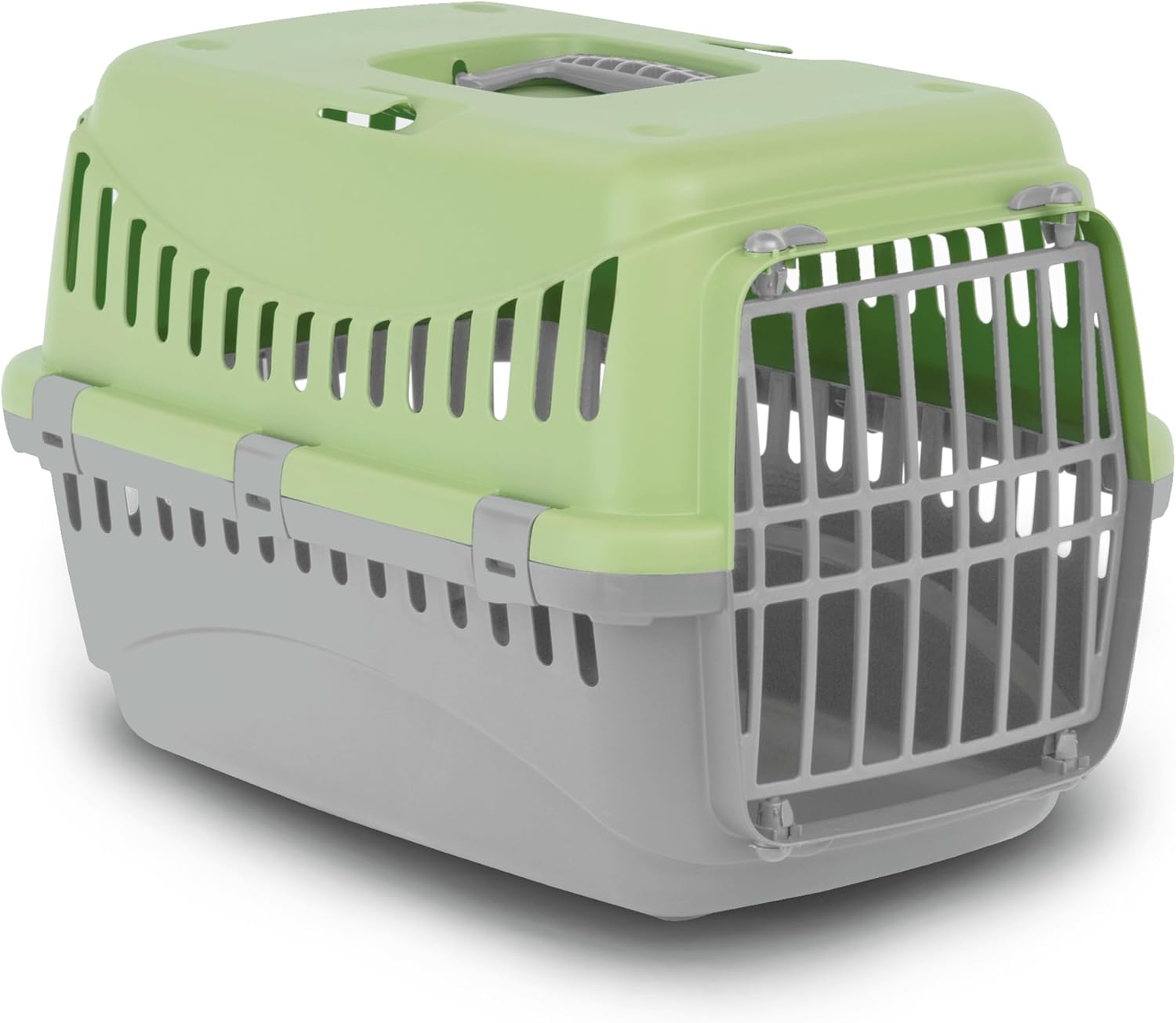 Транспортна кутия, оборудвана с пластмасова врата - препоръчително максимално натоварване 5 кг. Здрава пластмасова транспортна кутия за максимална безопасност по време на транспортиране. Възможност за закрепване на кутията към колата с предпазния колан (специални прорези). Широката предна врата и страничните отвори за въздух позволяват на вашия домашен любимец да пътува без стрес и в добро състояние.