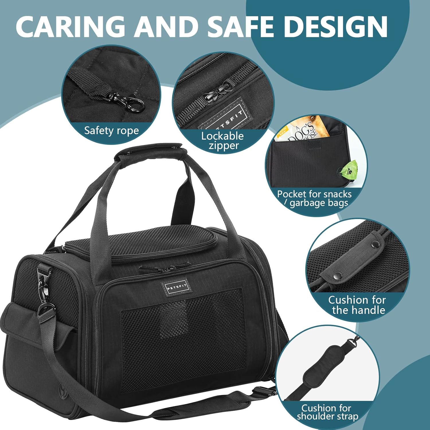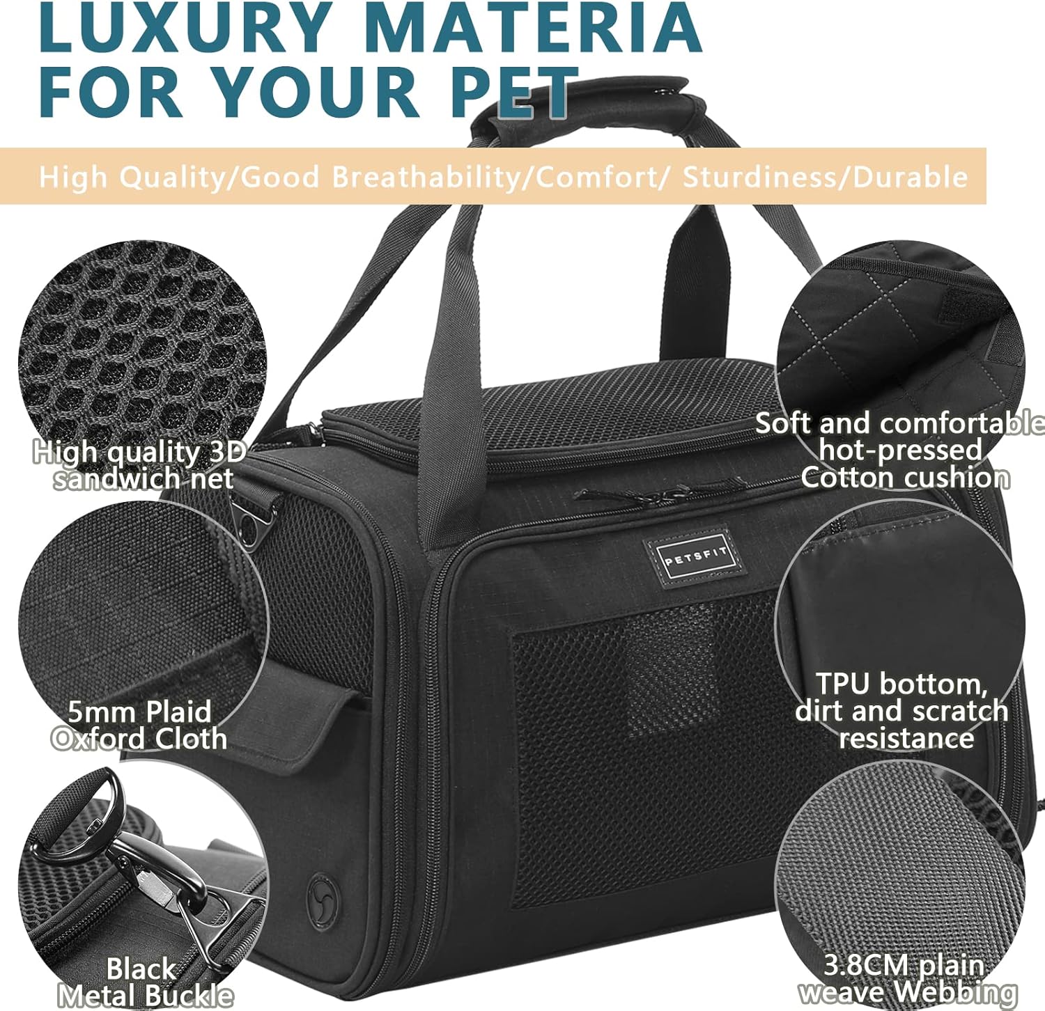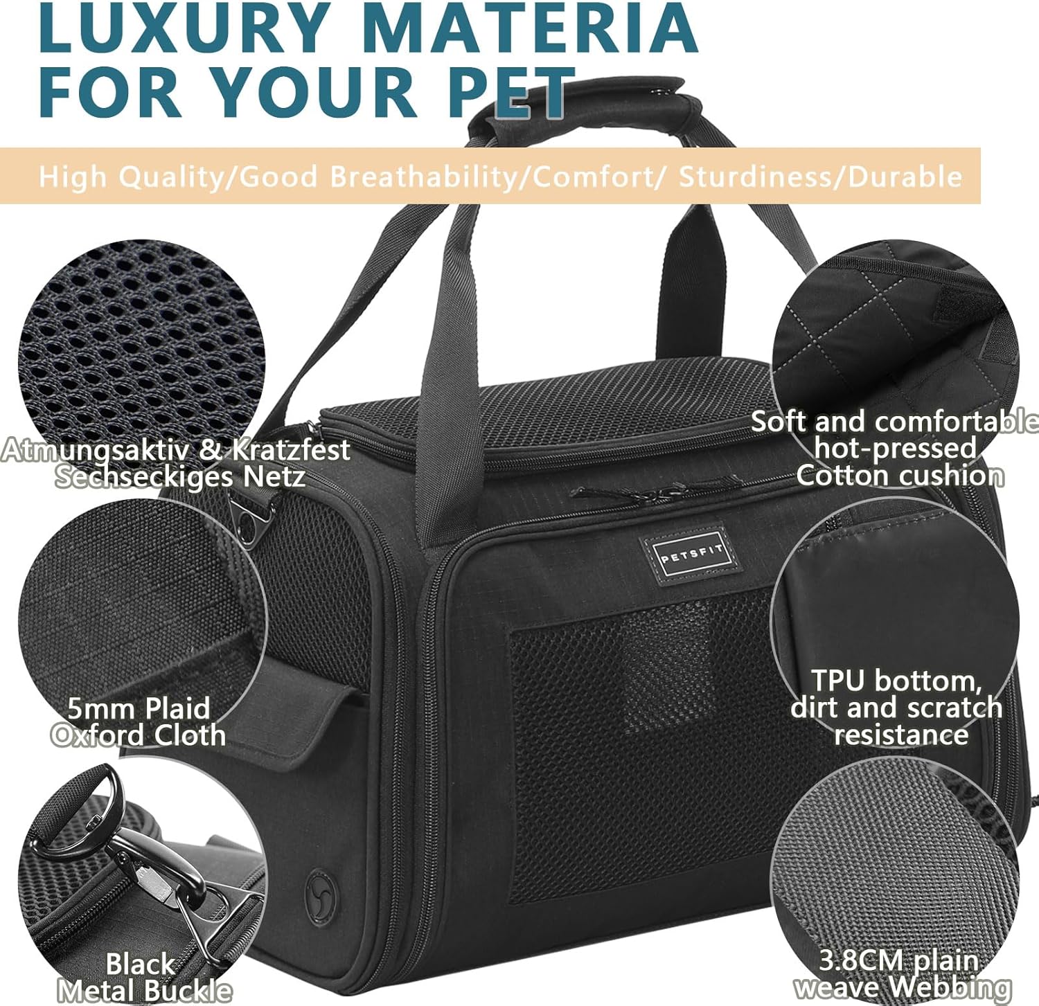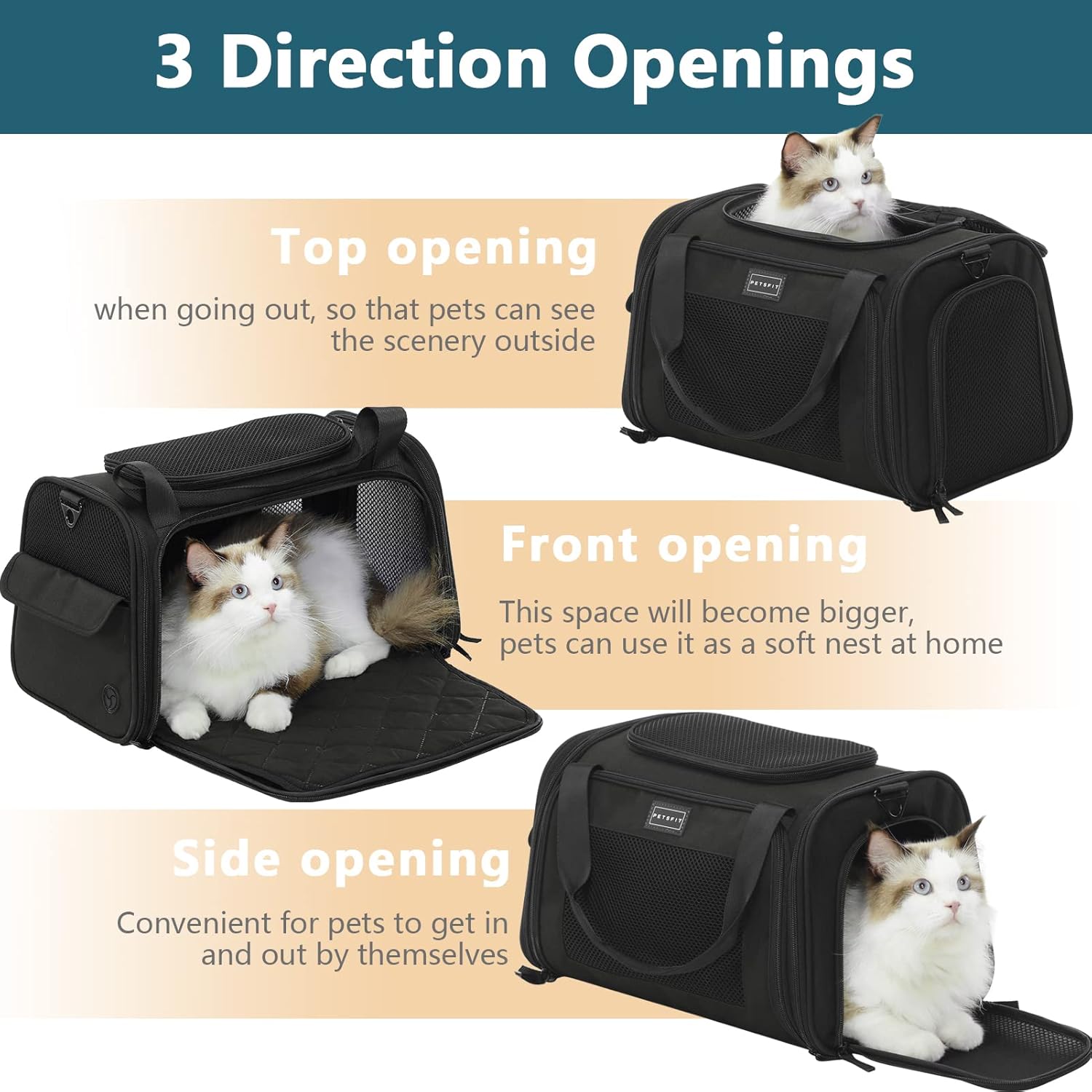 Транспортна кутия Petsfit за котки и кучета, сгъваема чанта за транспортиране, чанта за кучета за котки и малки кучета, висококачествена чанта за носене, чанта за полет за кучета и котки с презрамка за рамо и мека разтегателна възглавница