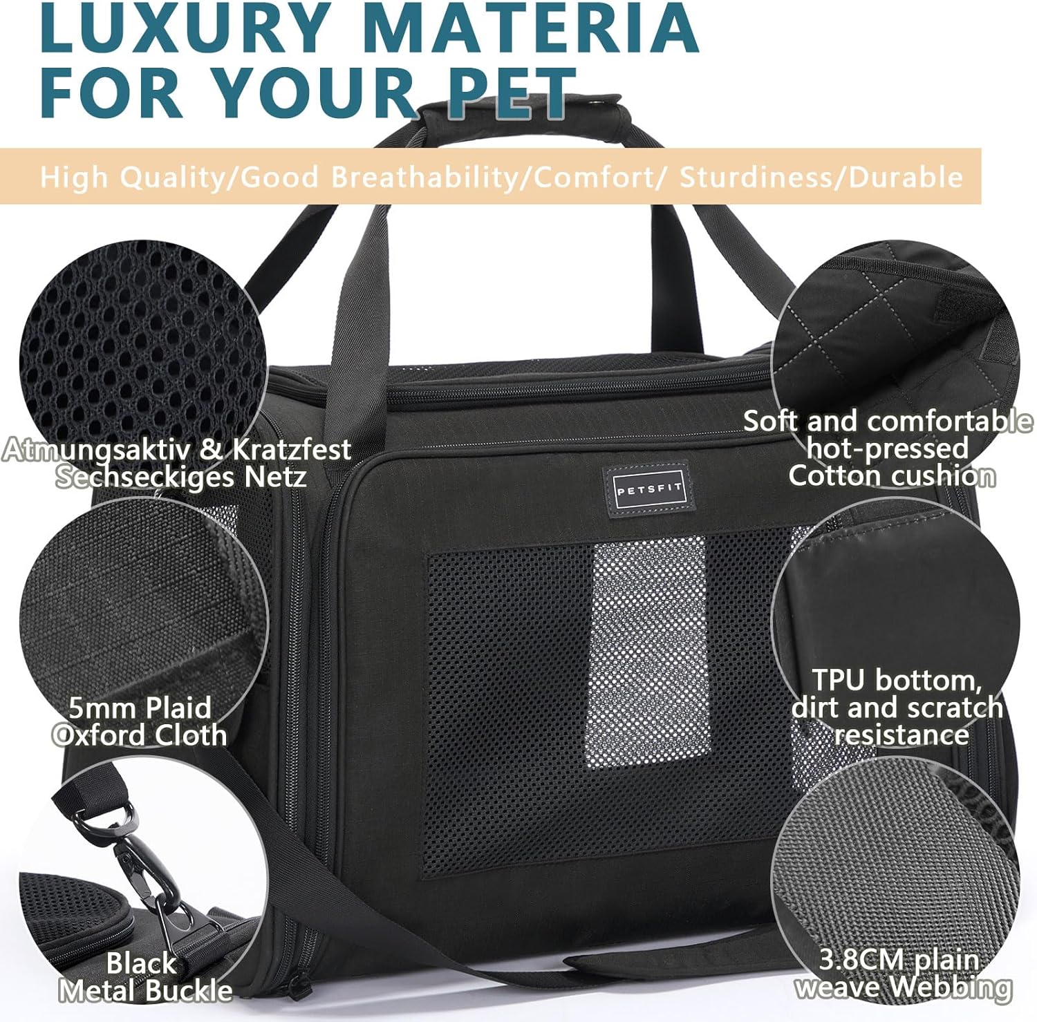• Отлична изработка и издръжливост: тази кутия за транспортиране на котки е изработена от висококачествен плат Оксфорд и 3D сандвич мрежа, която е водоустойчива, устойчива на износване и надраскване. Висококачествените метални закопчалки могат да издържат на по-тежки предмети и не се повреждат лесно.