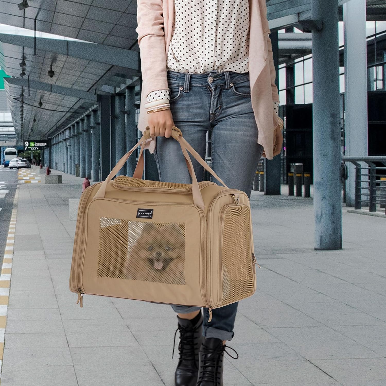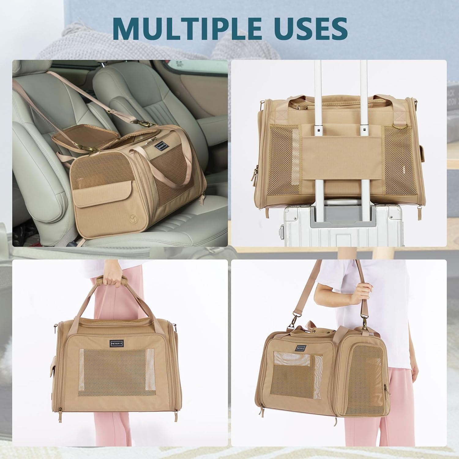 • Много начини за избор: тази чанта за пътуване за кучета и котки може да се носи в ръка или на рамо, може да се постави на столчето за кола или на куфара. (Размер L не е подходящ за чанта за самолет)