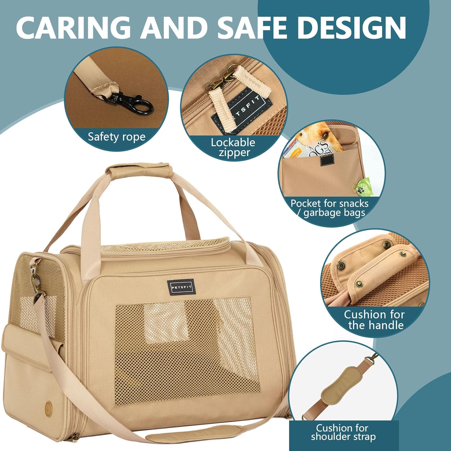 Транспортна кутия Petsfit за котки и кучета, сгъваема транспортна чанта, чанта за кучета за котки, висококачествена чанта за носене, кучета и котки с презрамка за рамо и мека разтегателна възглавница, голяма