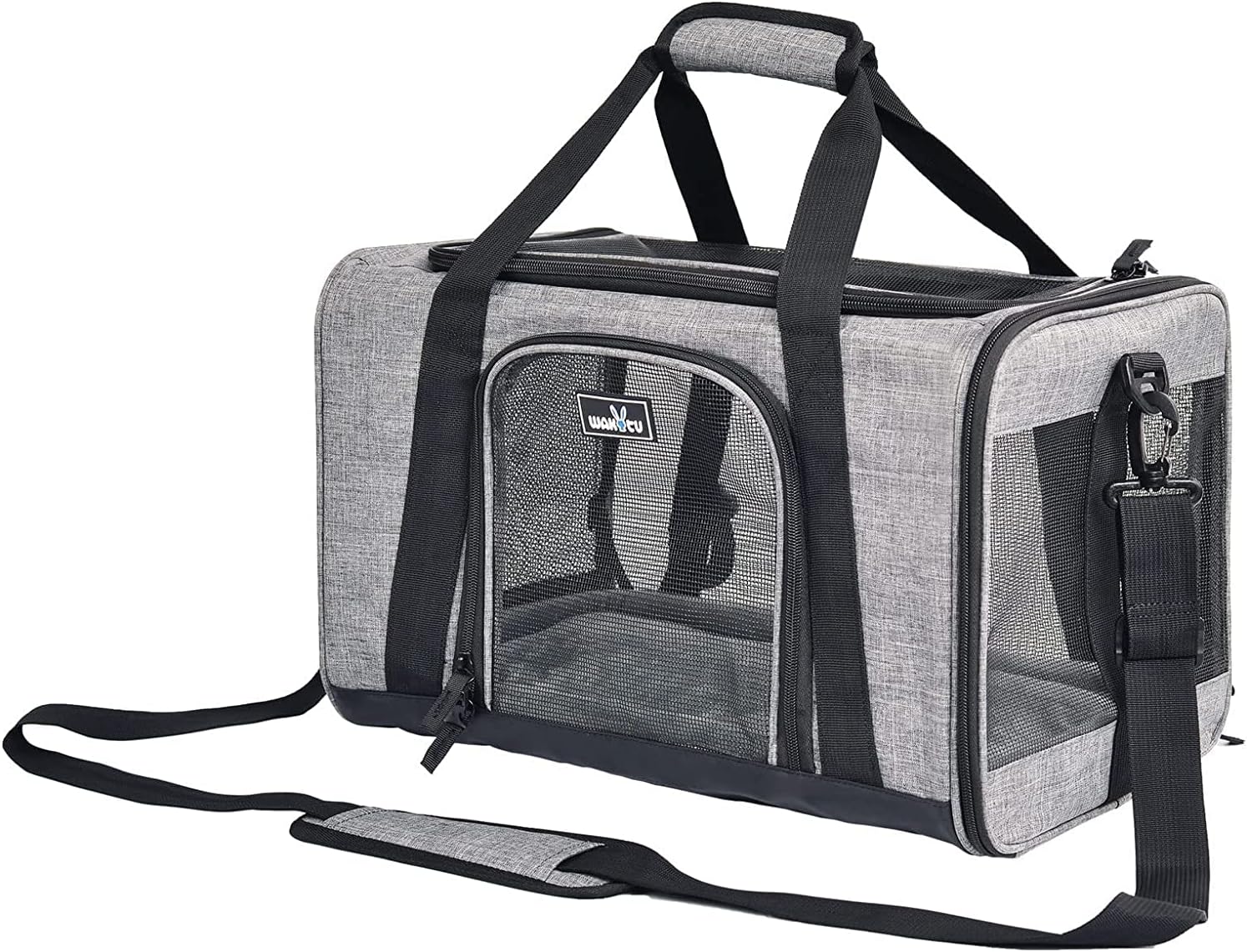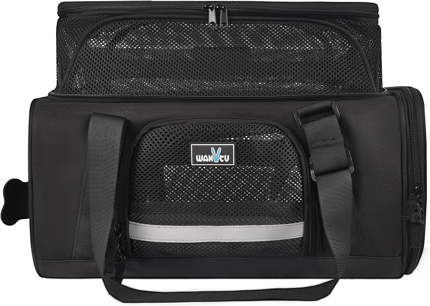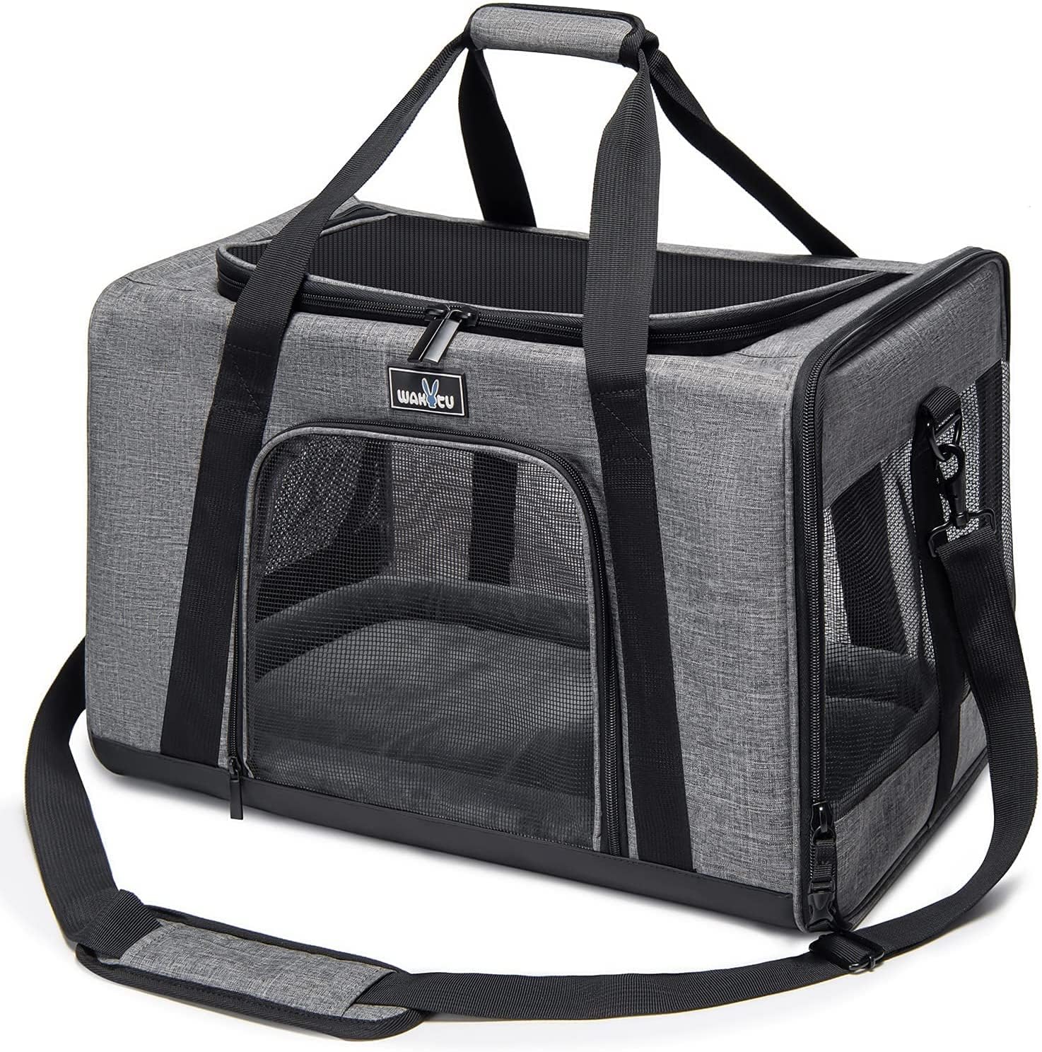 Транспортна кутия Wakytu, кутия за котки и кучета, подходяща за самолети, чанта за домашни любимци, дишаща сгъваема чанта за транспортиране на кучета, чанта за котки за пътуване в кола, черна