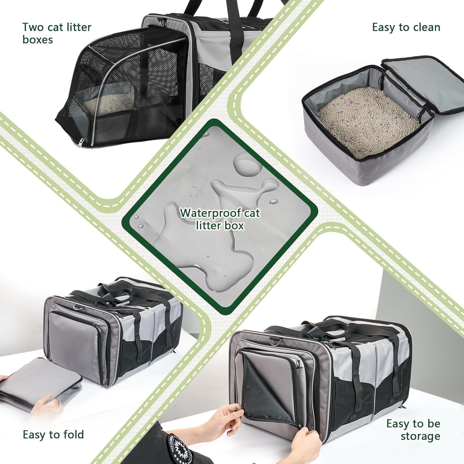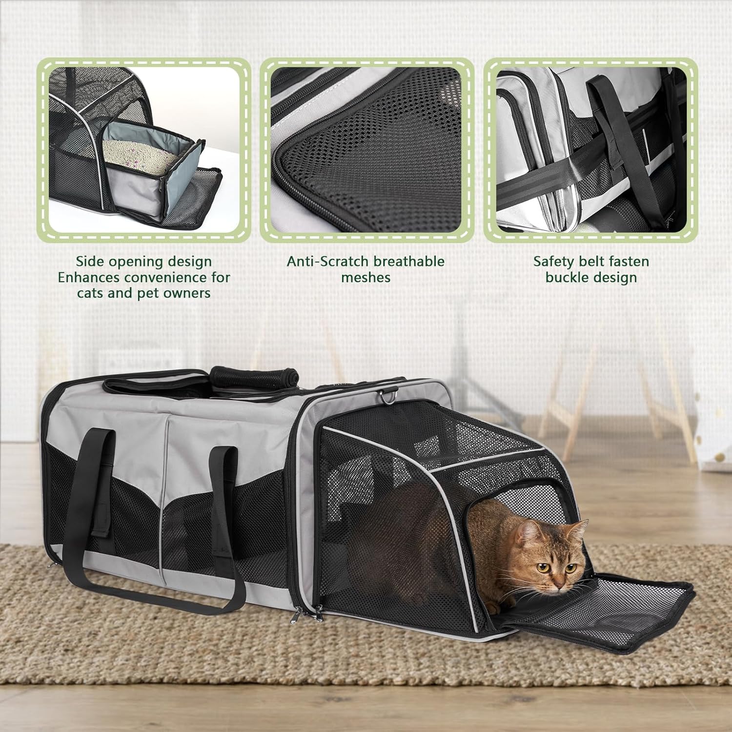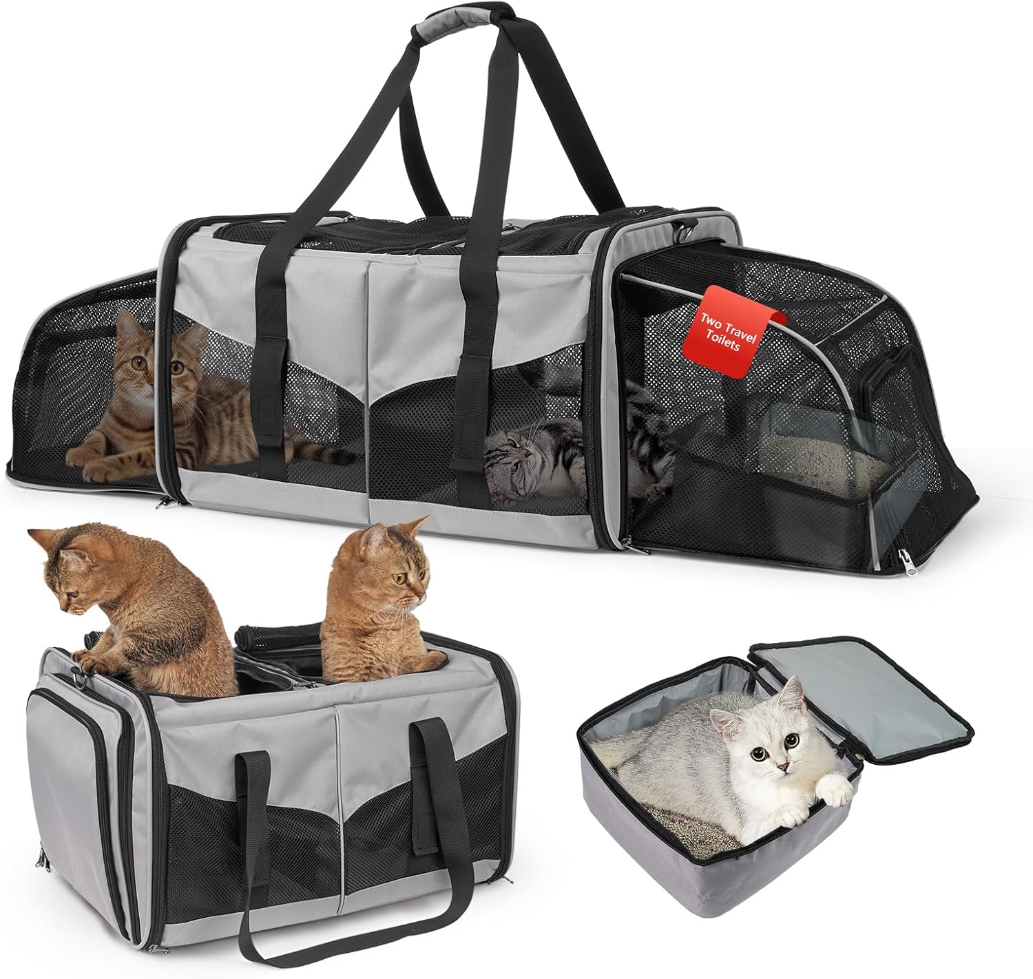Две изключително големи разтегателни зони отляво и отдясно позволяват на вашите домашни любимци лесно да се обръщат и разтягат. Благодарение на достатъчното пространство, вашите две котки могат да лежат удобно по време на дълги пътувания.