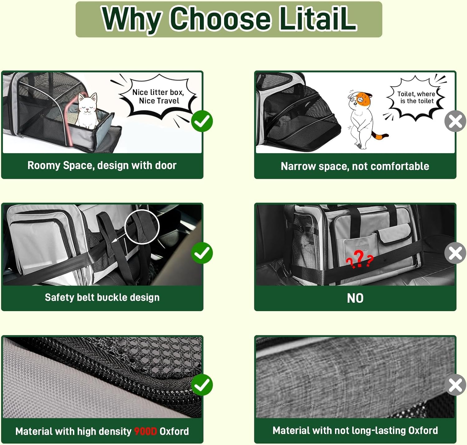 Транспортната чанта за котки LitaiL осигурява оптимална циркулация на въздуха и гарантира благополучието и безопасността на вашата котка по време на транспортиране.