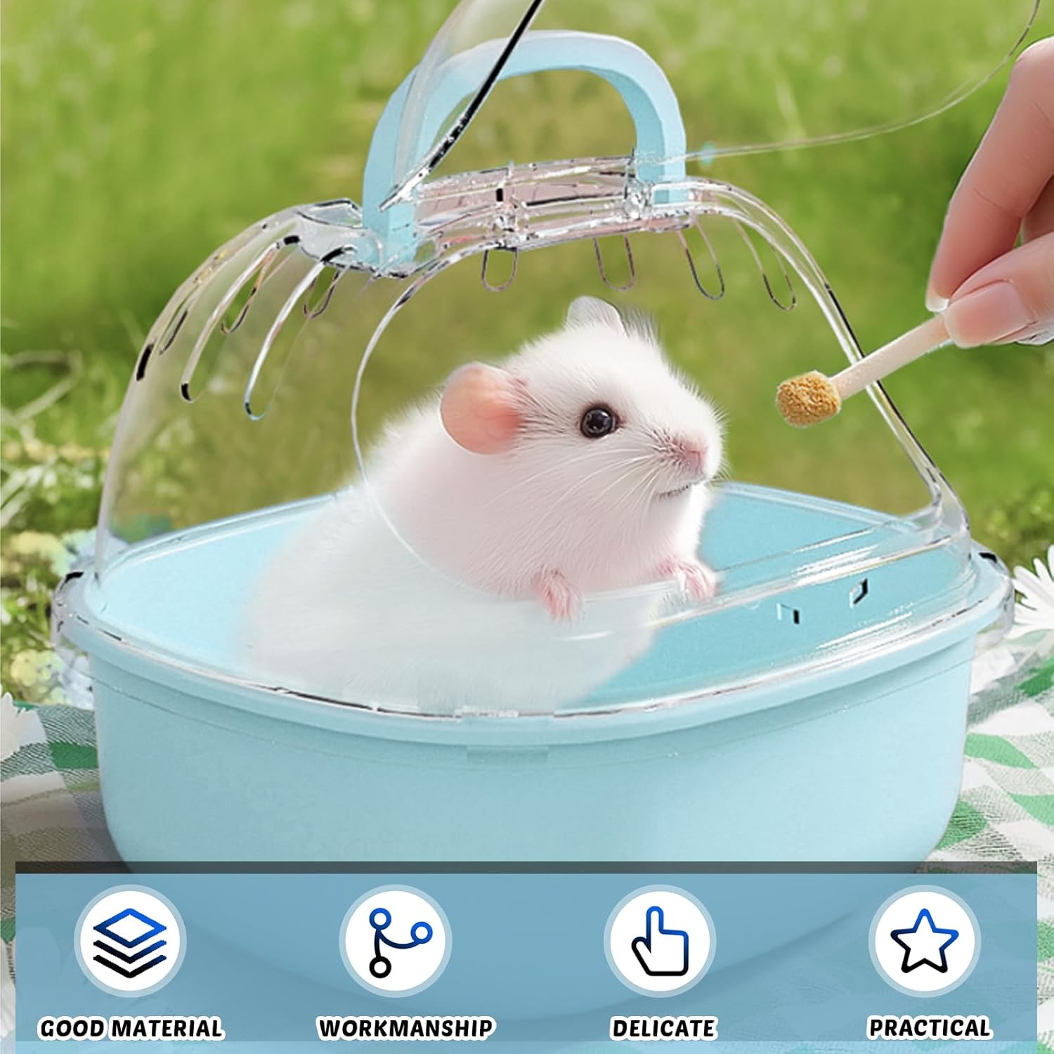 - Снабдена е с катарами, които могат ефективно да предотвратят случайно бягство на хамстерите по време на пътуване, така че да се чувствате по-комфортно и да се насладите на безгрижно време за пътуване.