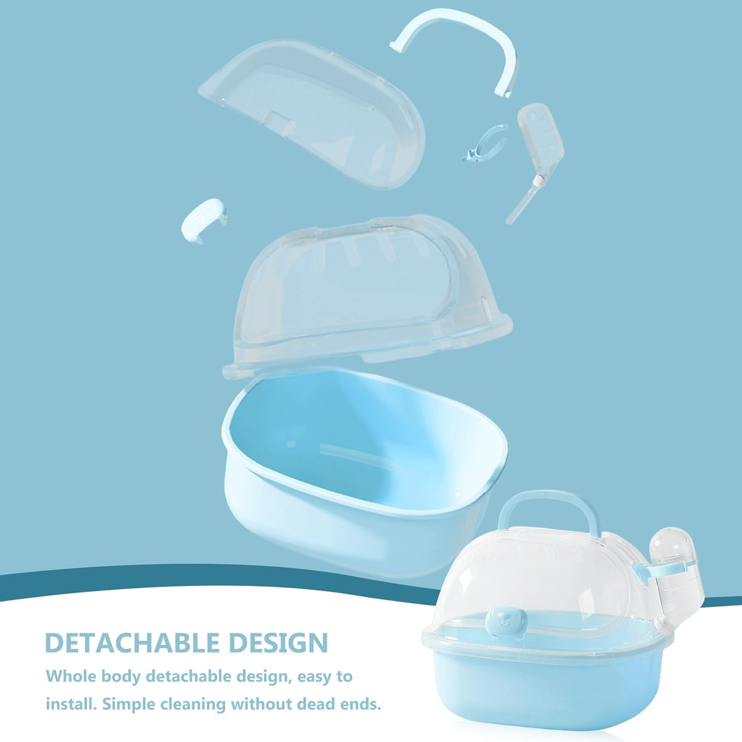 - Малката бутилка за вода от 60 мл на транспортната клетка е изящно проектирана и няма воден запушал. Просто добавете вода, ако искате да пиете. В същото време, подвижният дизайн е лесен за почистване.