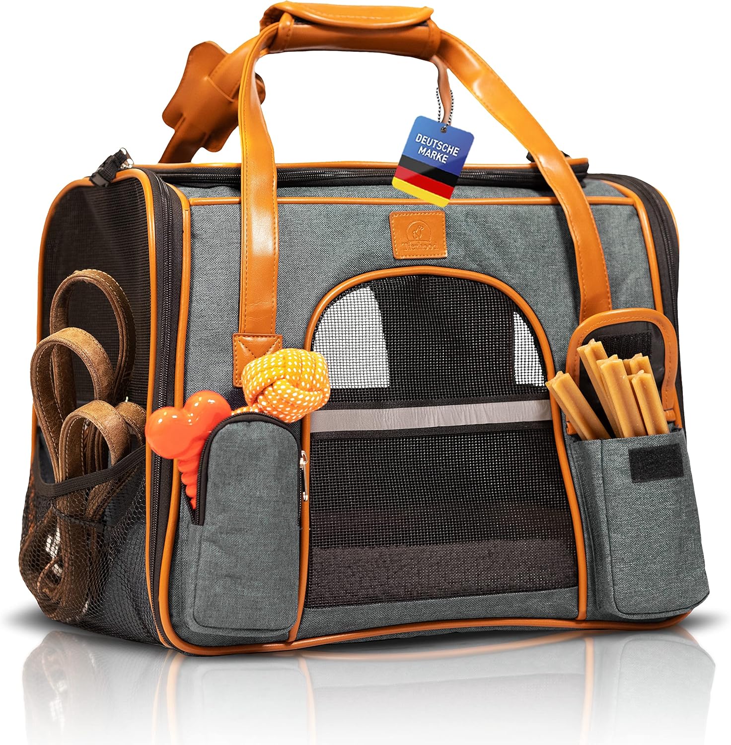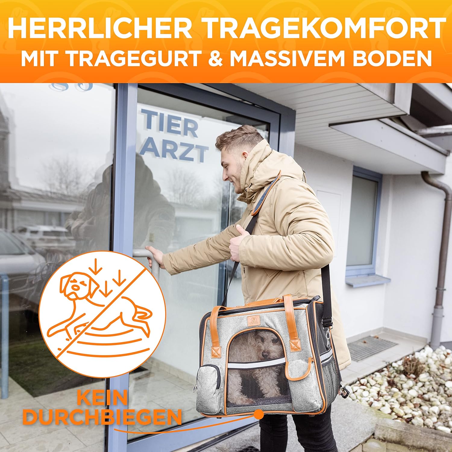 • Устойчив на счупване - Оборудвана с устойчива на надраскване мрежа и предпазен цип, нашата транспортна чанта надеждно предпазва от нежелани пробиви и предлага на вашия домашен любимец дълготрайна защита.