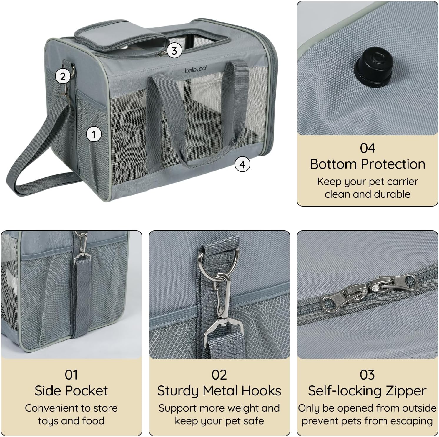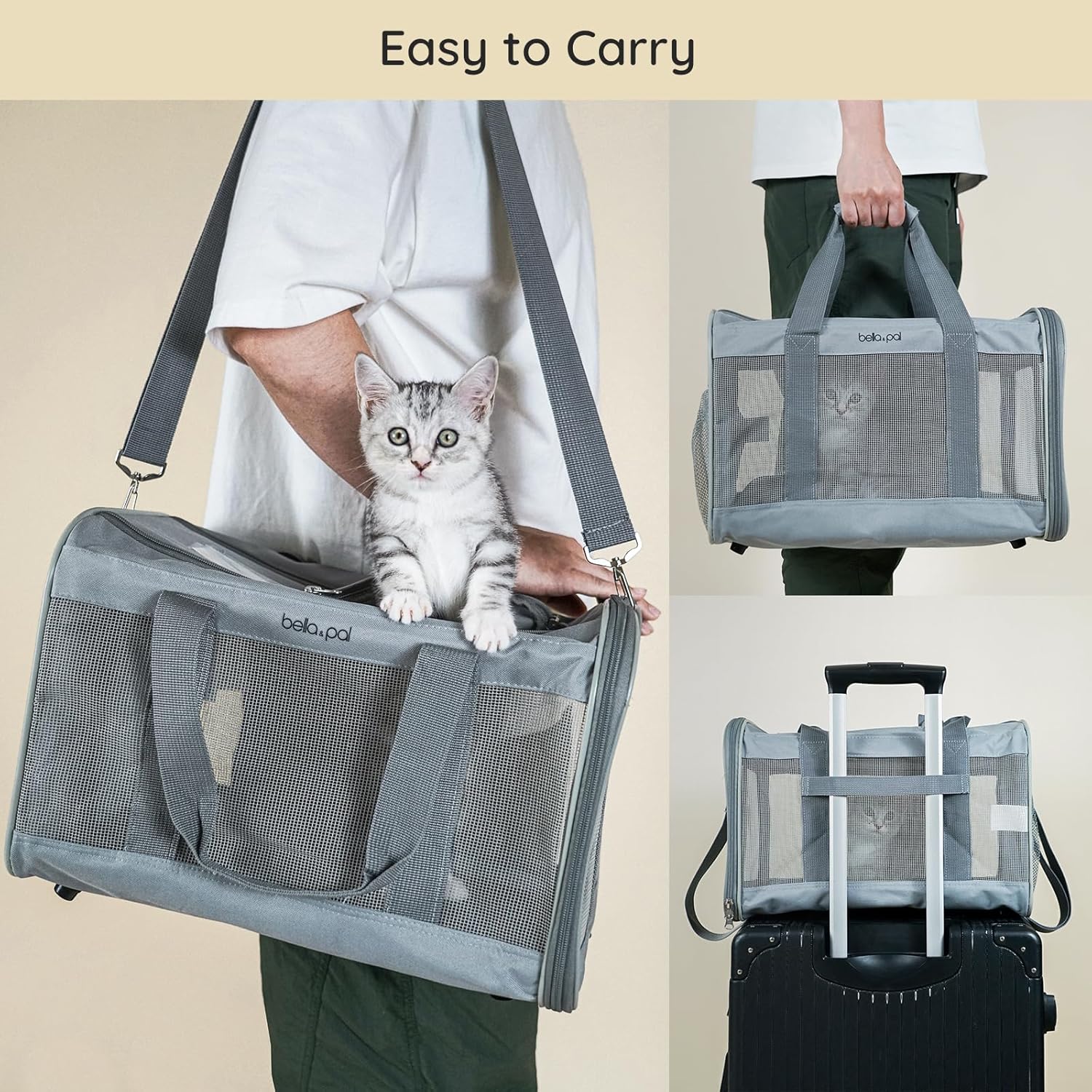 • ЧАНТА ЗА ДОМАШНИ ЛЮБИМЦИ, ОДОБРЕНА ОТ АВИОЛИНИИ Преносимата чанта за котки Bella & Pal Light е одобрена от авиокомпании и е идеална за стилно и удобно пътуване със самолет или кола, независимо дали сте на почивка или отивате на ветеринар. Побира се под седалката. Средната е подходяща за повечето авиокомпании. Моля, проверете правилата на авиокомпанията преди полет.
