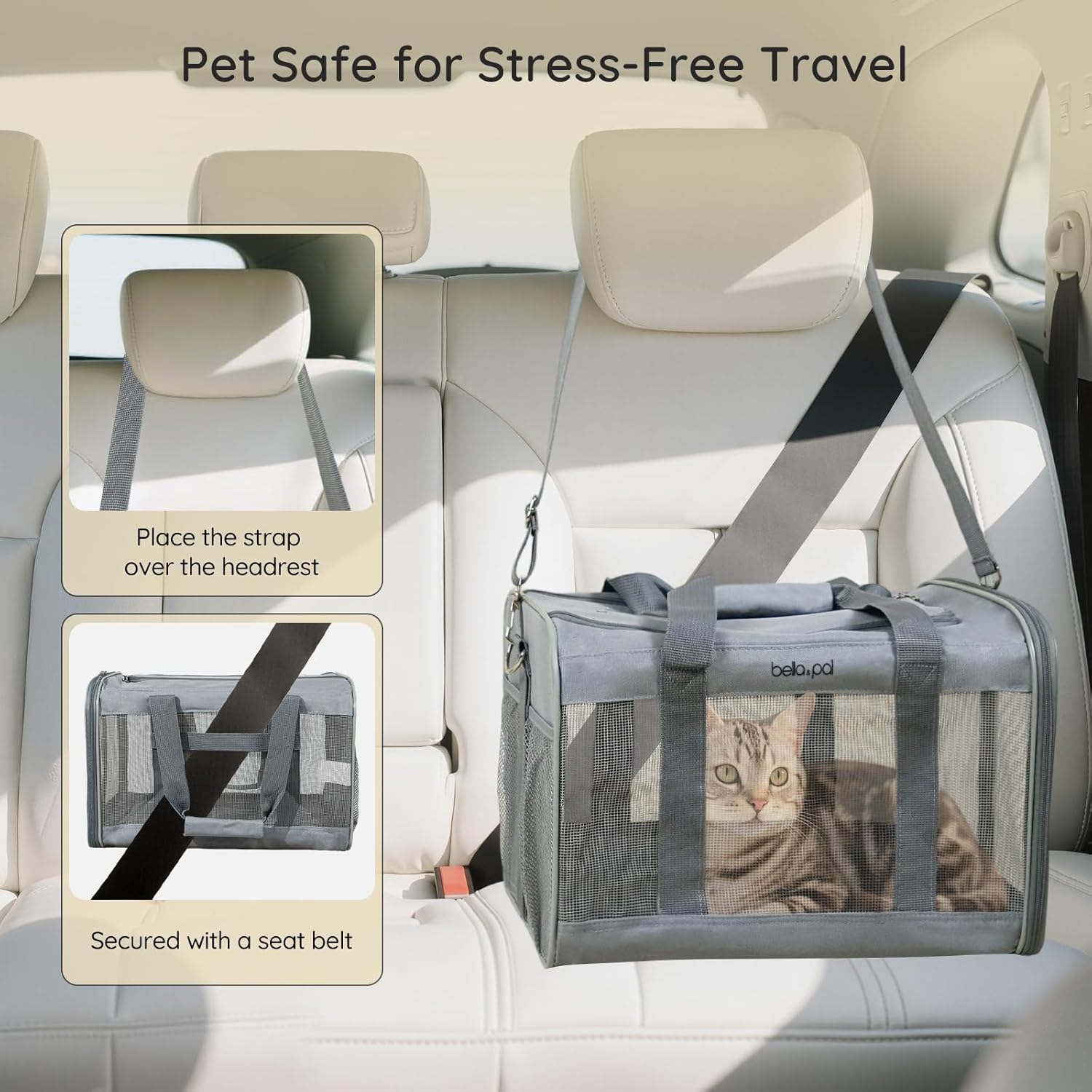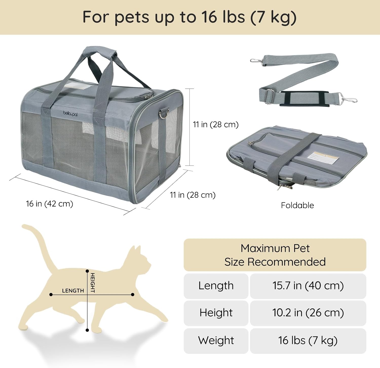 Транспортна кутия за котки BELLA & PAL за котки и кученца - Лека сгъваема транспортна чанта за котки - Защитена от бягство, водоустойчива и устойчива на надраскване мрежа, 42 x 28 x 28 см до 7 кг за ветеринарен лекар/кола/самолет