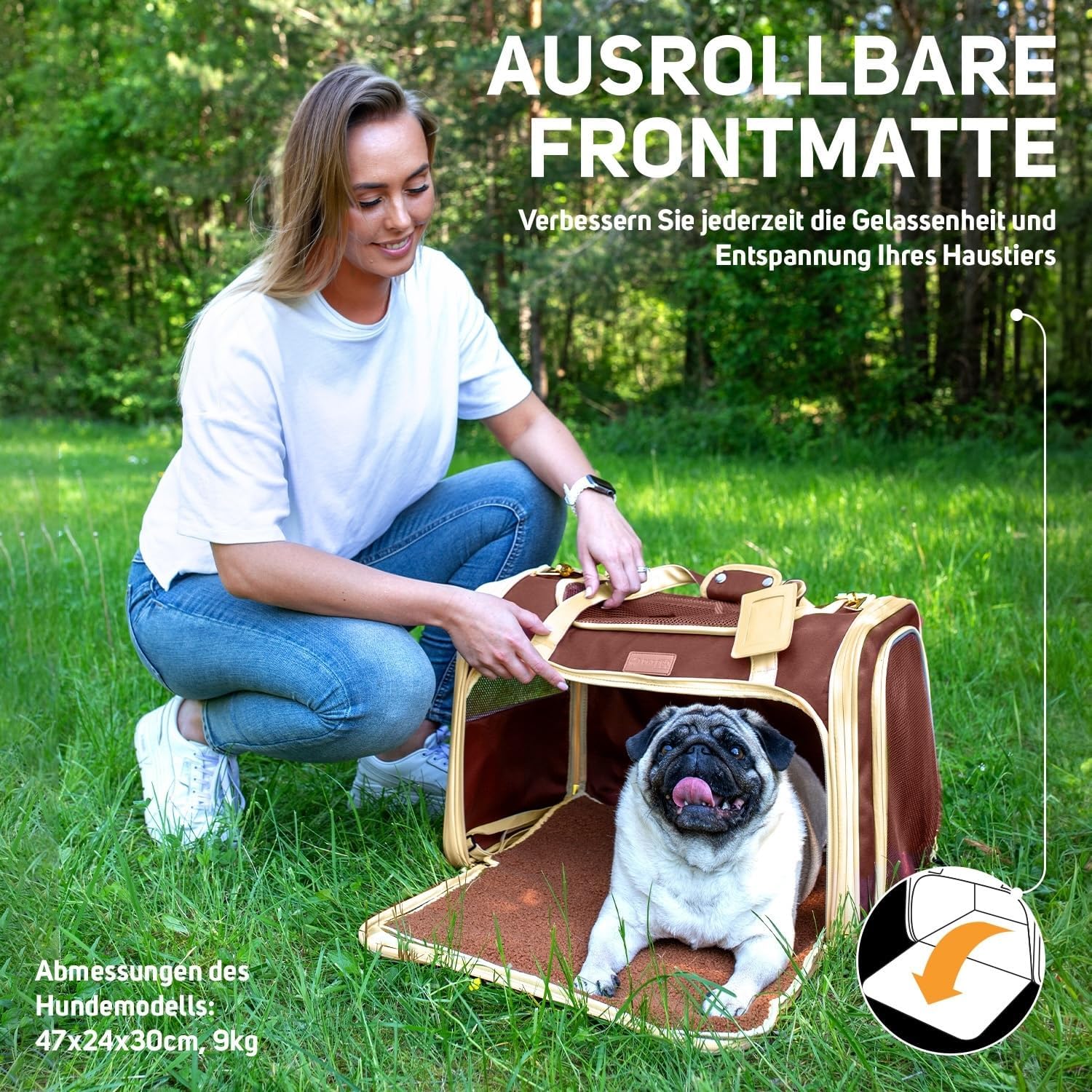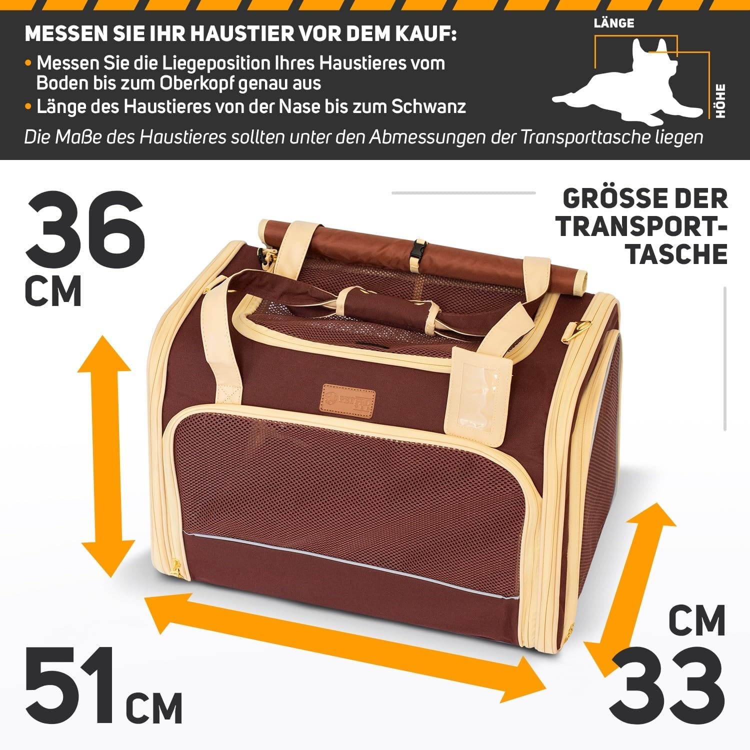 • Разнообразие от размери за вашия домашен любимец – Както знаем, различните размери на домашните любимци изискват различни вещи, така че измерете и претеглете вашия пухкав приятел и изберете чантата за носене! Тази малка транспортна кутия с размери 50 x 35 x 35 см е идеална за кучета до 7 кг. Дори и най-малкото може да бъде ваш спътник при пътуване.
