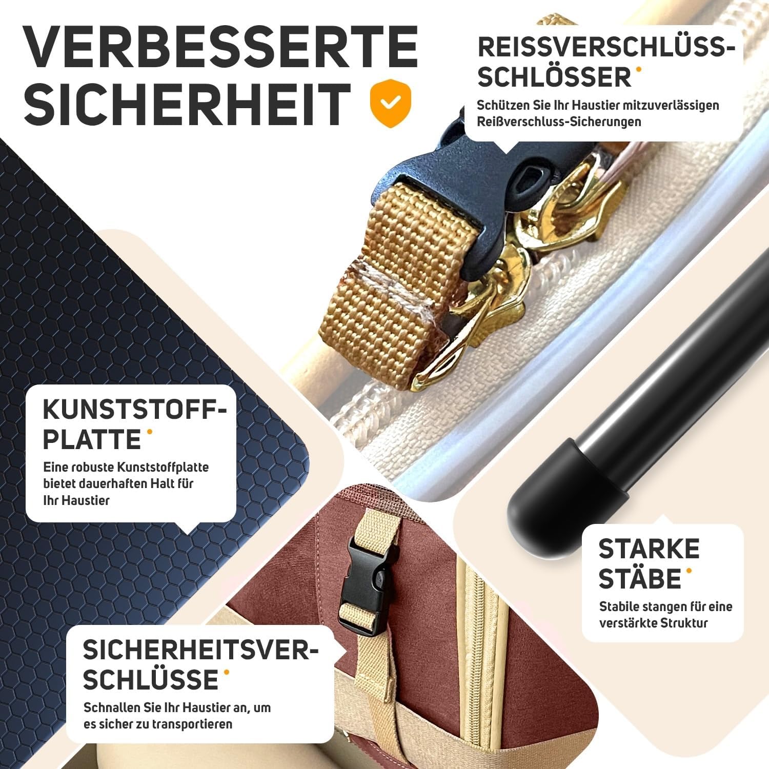 • Безопасността е на първо място и PETPROVED са помислили за всичко - за да се осигури допълнително сигурно закрепване, са предвидени две дръжки за предпазния колан. А ако имате пакостлив спътник - не се притеснявайте! Циповете са с технология за автоматично заключване, която може да се отваря само на ръка. Уверете се, че вашият домашен любимец е удобен и безопасен по време на пътуване!