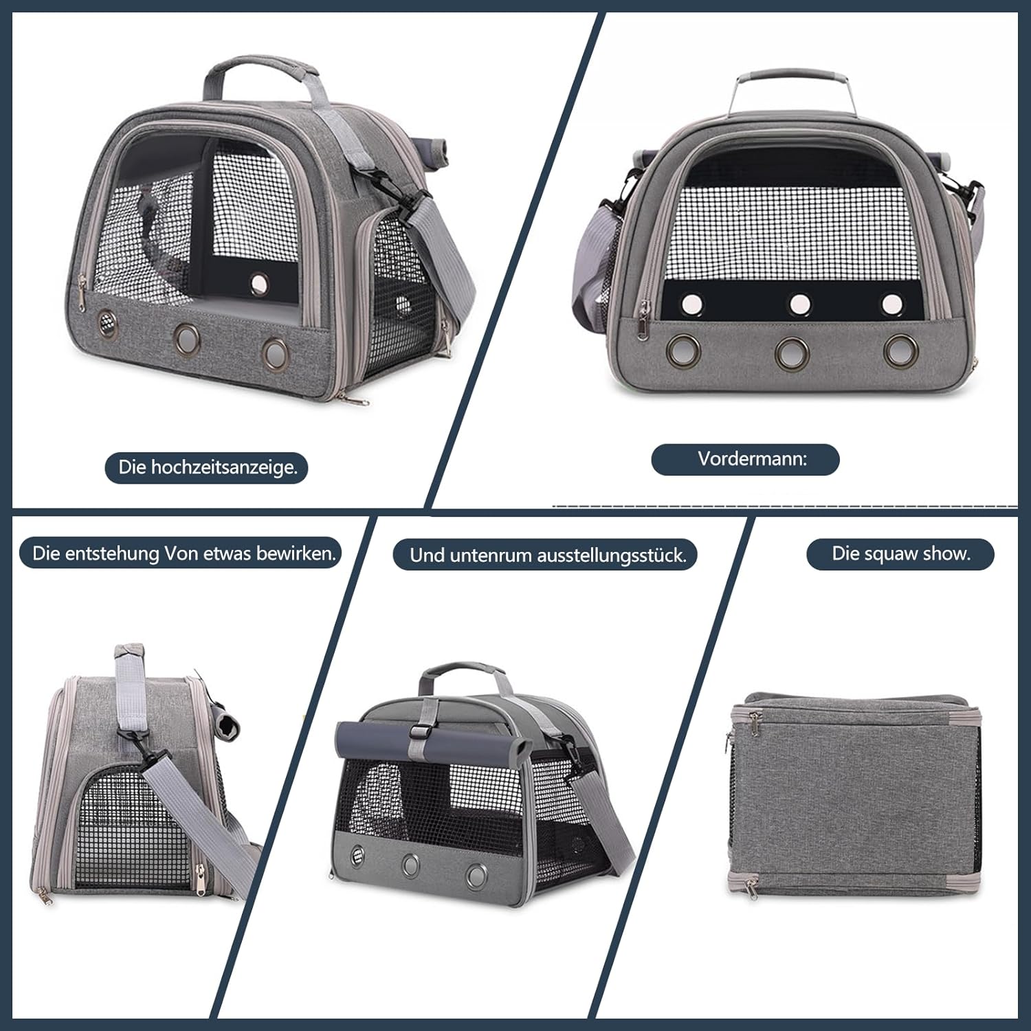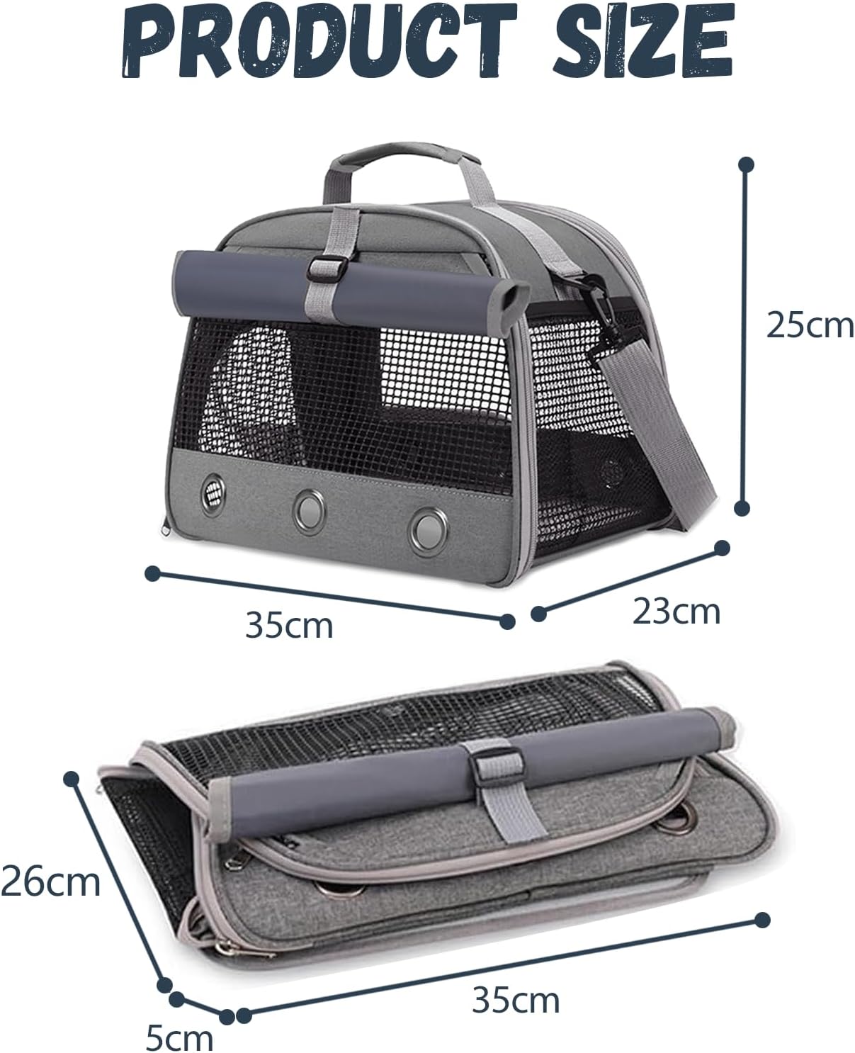 Транспортна кутия за котки, елегантна транспортна чанта за домашни любимци, транспортна кутия за зайци, транспортна кутия за хамстери, чанта за носене на морски свинчета, сгъваема и дишаща (сива)