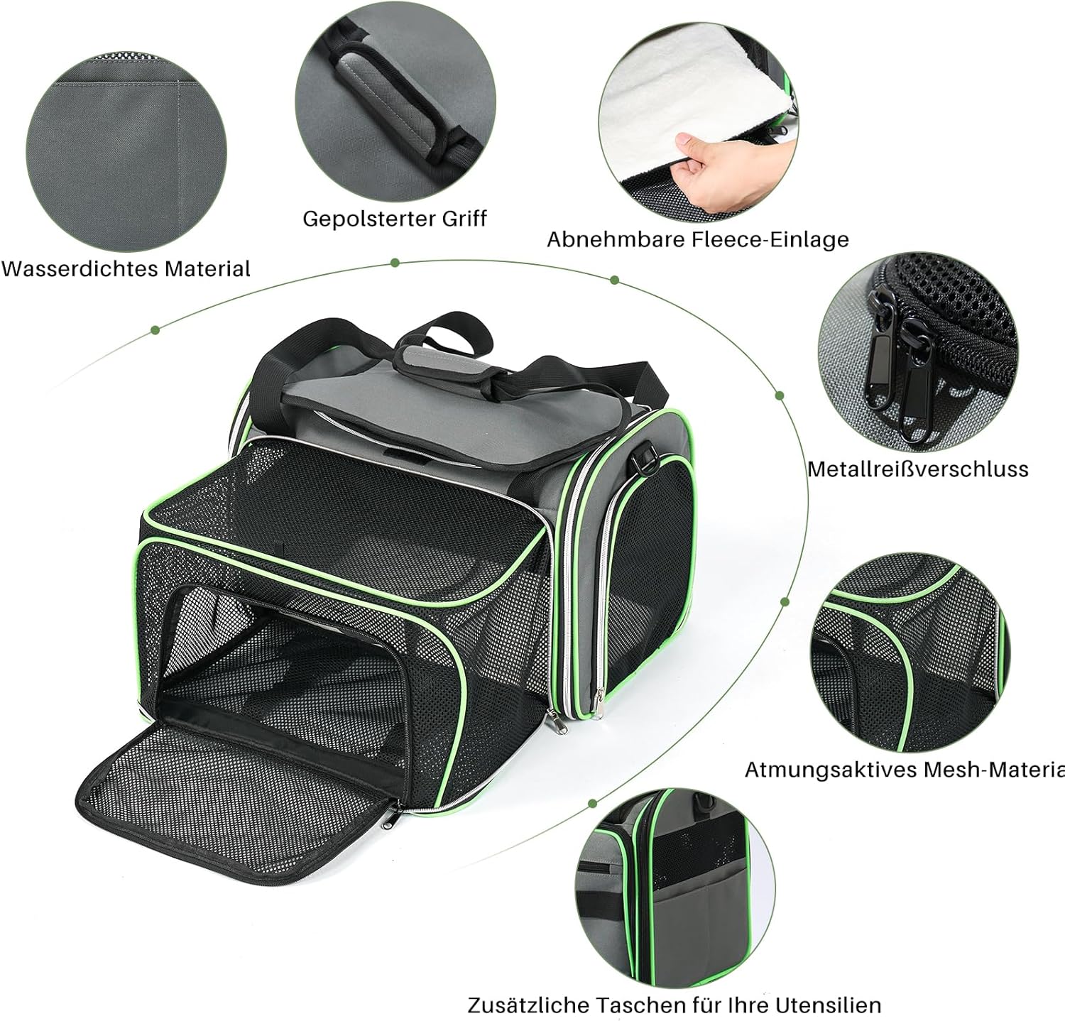 • МНОГОФУНКЦИОНАЛНА УПОТРЕБА Независимо дали посещавате ветеринарен лекар, пътувате с кола или в самолет, тази раница предлага множество опции за носене: в ръка, през рамо, като раница или под седалката на самолета. Тя несъмнено е отличен избор за котки и кучета.