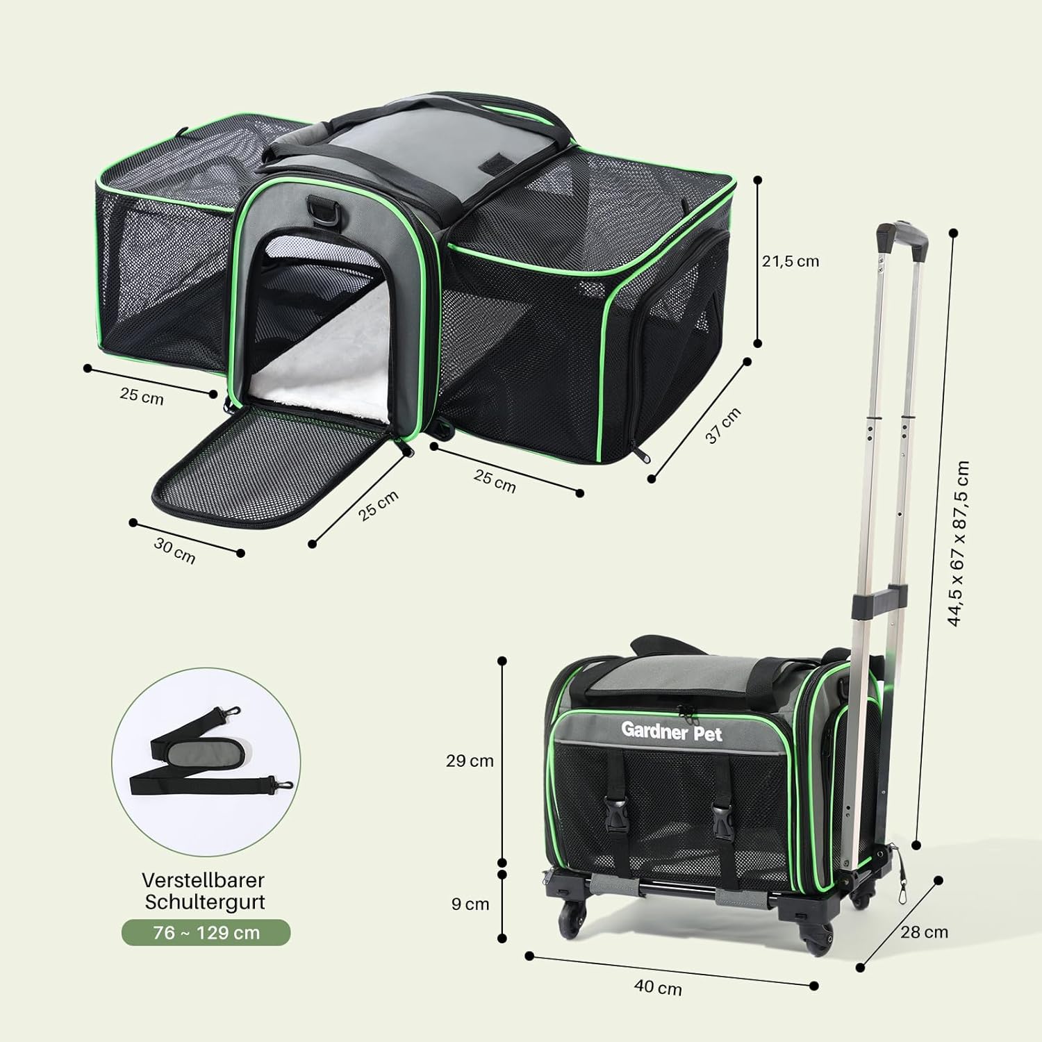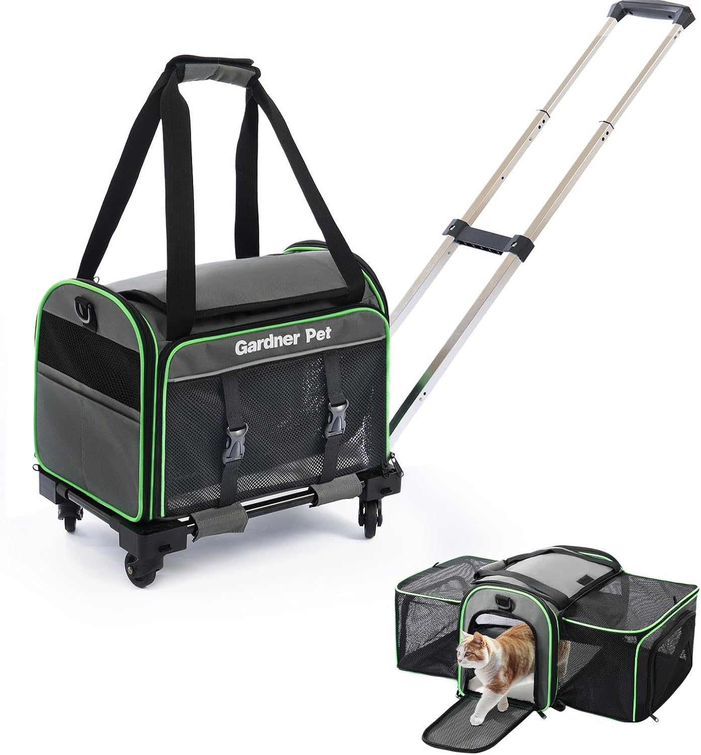 Транспортна кутия за котки Gardner Pet Cat, кутия за домашни любимци с колела, сгъваема и разширяема за котки и малки кучета, дишаща транспортна чанта, чанта за пътуване с презрамка за домашни любимци, без BPA, размер M