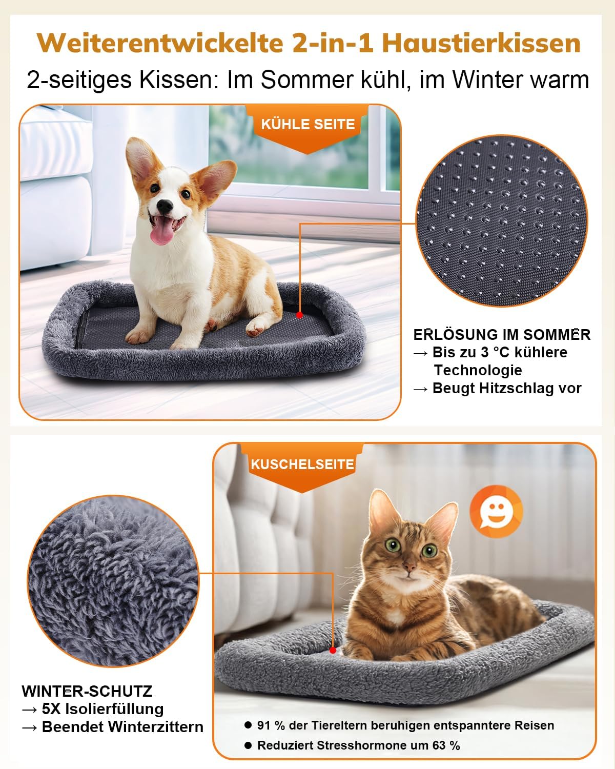 • УНИВЕРСАЛЕН СПРАВТОР ЗА ПЪТУВАНЕ Голямата преносима кутия за котки осигурява на вашия домашен любимец достатъчно пространство за движение, въртене и разтягане, когато пътувате на дълги разстояния. С размери 43 x 28 x 35 см, тя е по-широка и по-висока от повечето преносими кутии за котки и гарантира, че вашият домашен любимец се чувства комфортно и спокойно в движение. Преносимата кутия за котки е подходяща за всички видове котки и малки животни и е перфектният спътник за пътуване с кола, влак и самолет.