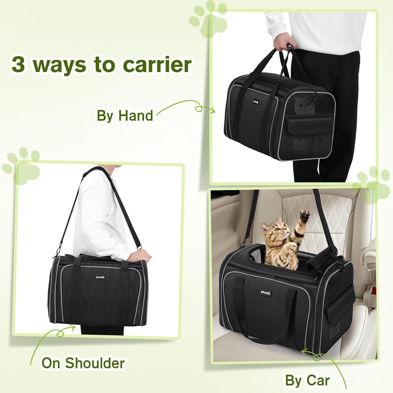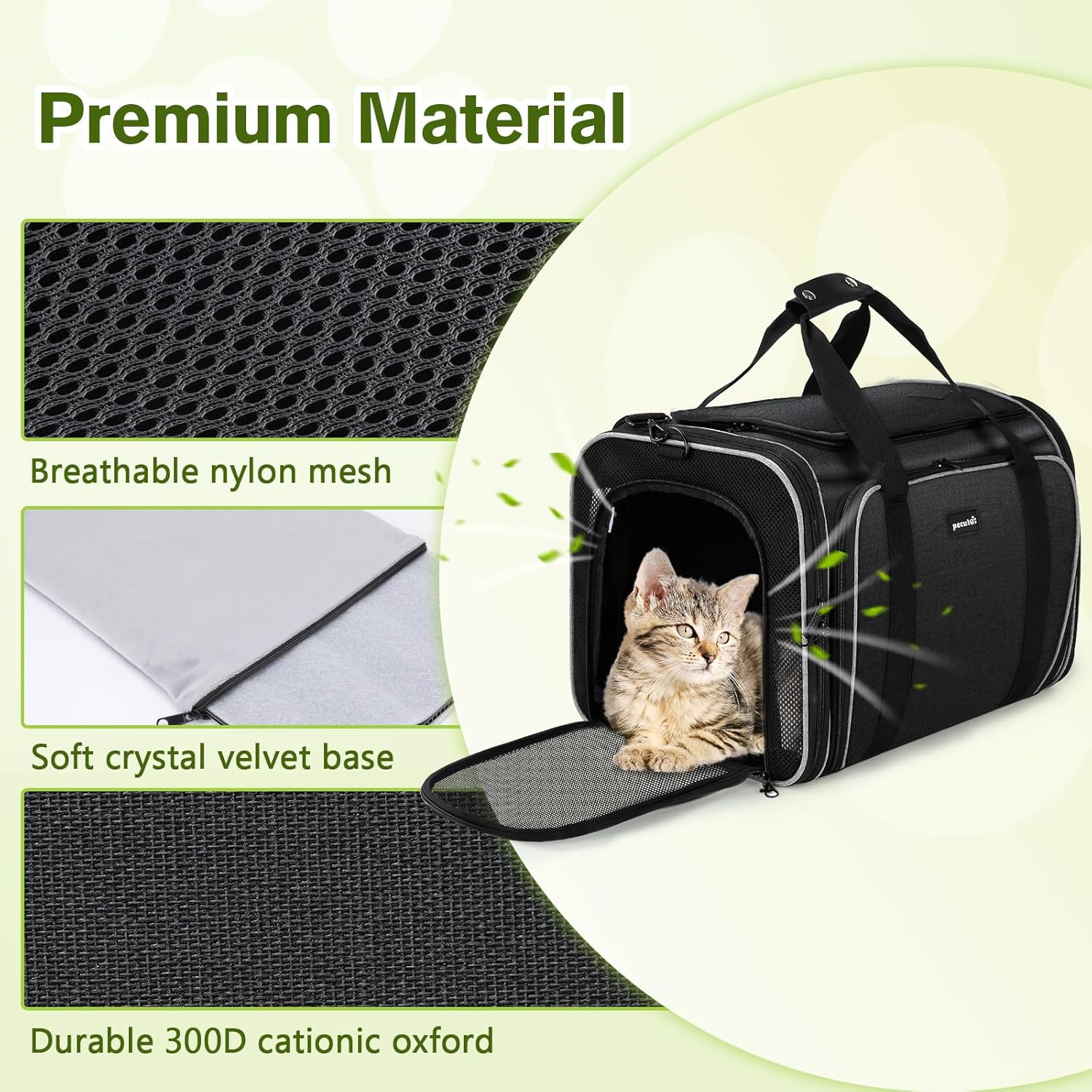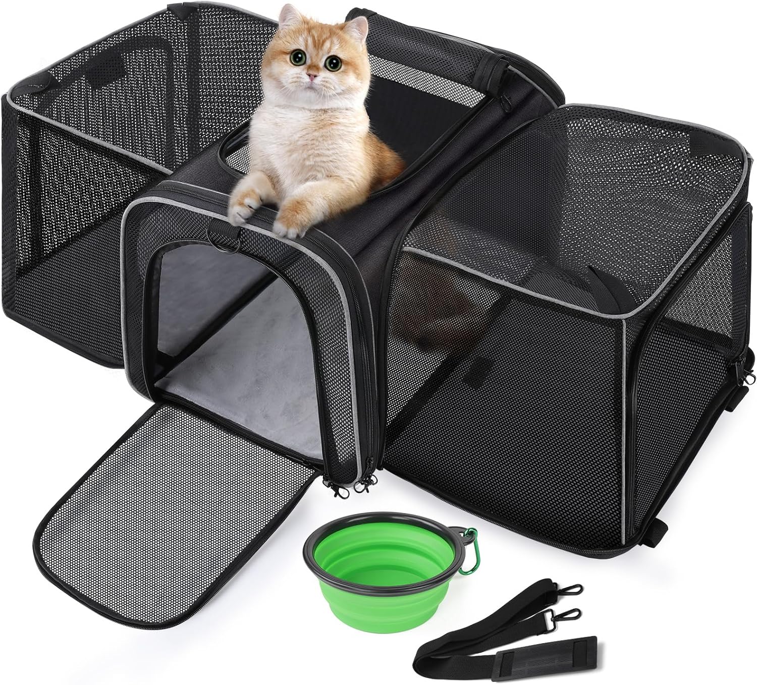 Транспортна кутия за котки pecute, Голяма транспортна кутия за котки, Разширяема кутия за котки, 200% увеличение на пространството, Ежедневен транспорт на домашни любимци, Външна ограда за домашни любимци до ветеринарната болница, Черна