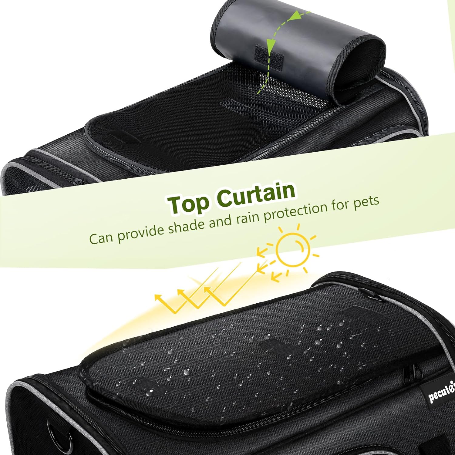 • Дишащ и стабилен дизайн: горната част на нашата котешка кутия е с мрежест дизайн със сгъваема ролетна завеса, която блокира слънцето и дъжда и осигурява лично пространство. Двойното удължение образува дишащо мрежесто пространство, което позволява на домашните любимци да дишат комфортно в транспортната чанта. Транспортната кутия е изработена от дебел материал на рамката, за да се осигури ефективно формата на кутията и комфортът на вашия домашен любимец.