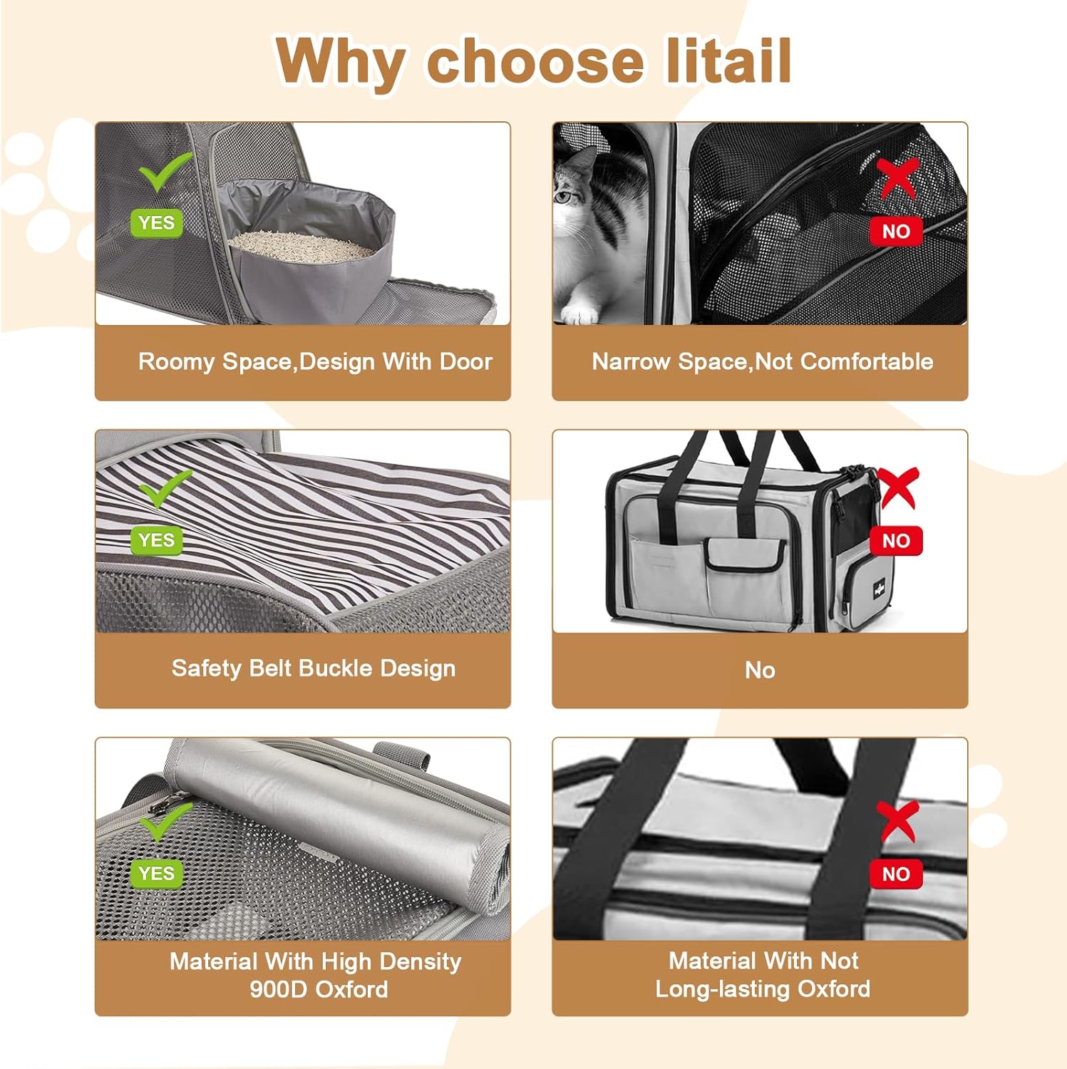 • ДИШАЩА ТОРБА ЗА КОТКА И ПЕРЕЩА СЕ - Преносимата торба за котки LitaiL осигурява оптимална циркулация на въздуха и гарантира благополучието и безопасността на вашата котка по време на транспортиране. Благодарение на дишащата конструкция, въздухът може лесно да навлезе в торбата, за да се гарантира, че котката ви получава достатъчно кислород. Освен това, дишането помага за намаляване на неприятните миризми.