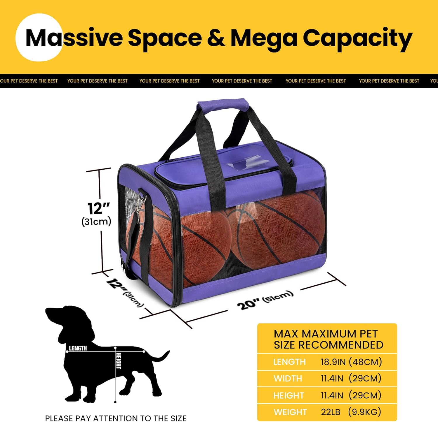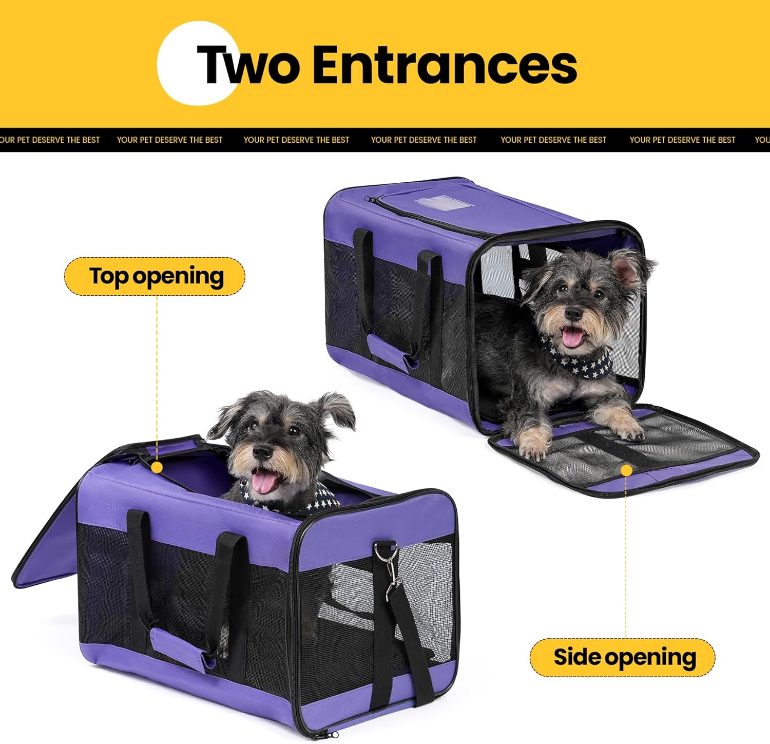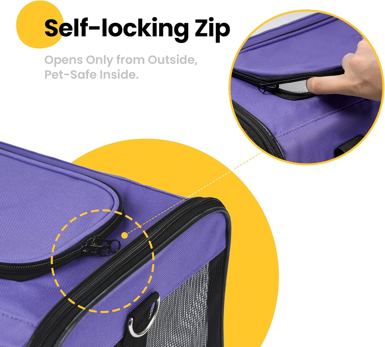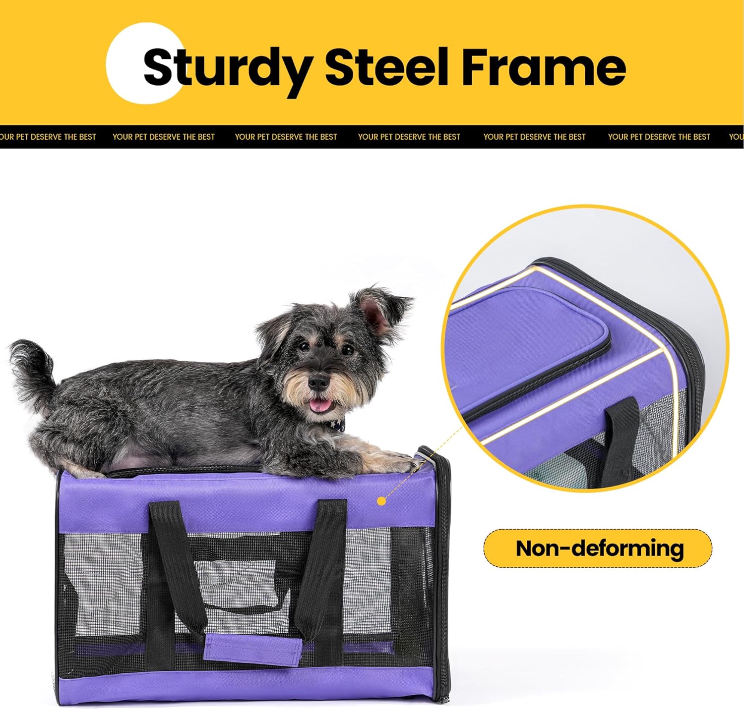 Транспортна кутия за кучета Conlun с меки страни, голяма чанта за котки с вътрешен повод, транспорт за големи котки и средни кучета до 9 кг, сгъваема чанта за пътуване за кученца, лилава, размер L
