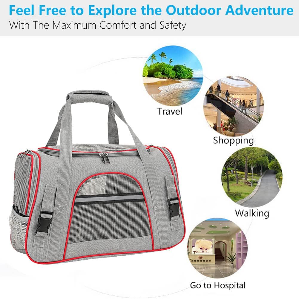 Множество отвори: Големите отвори от лявата и дясната страна и отгоре са удобни за влизане и излизане на домашните любимци, а малкият отвор на гърба е удобен за хранене.