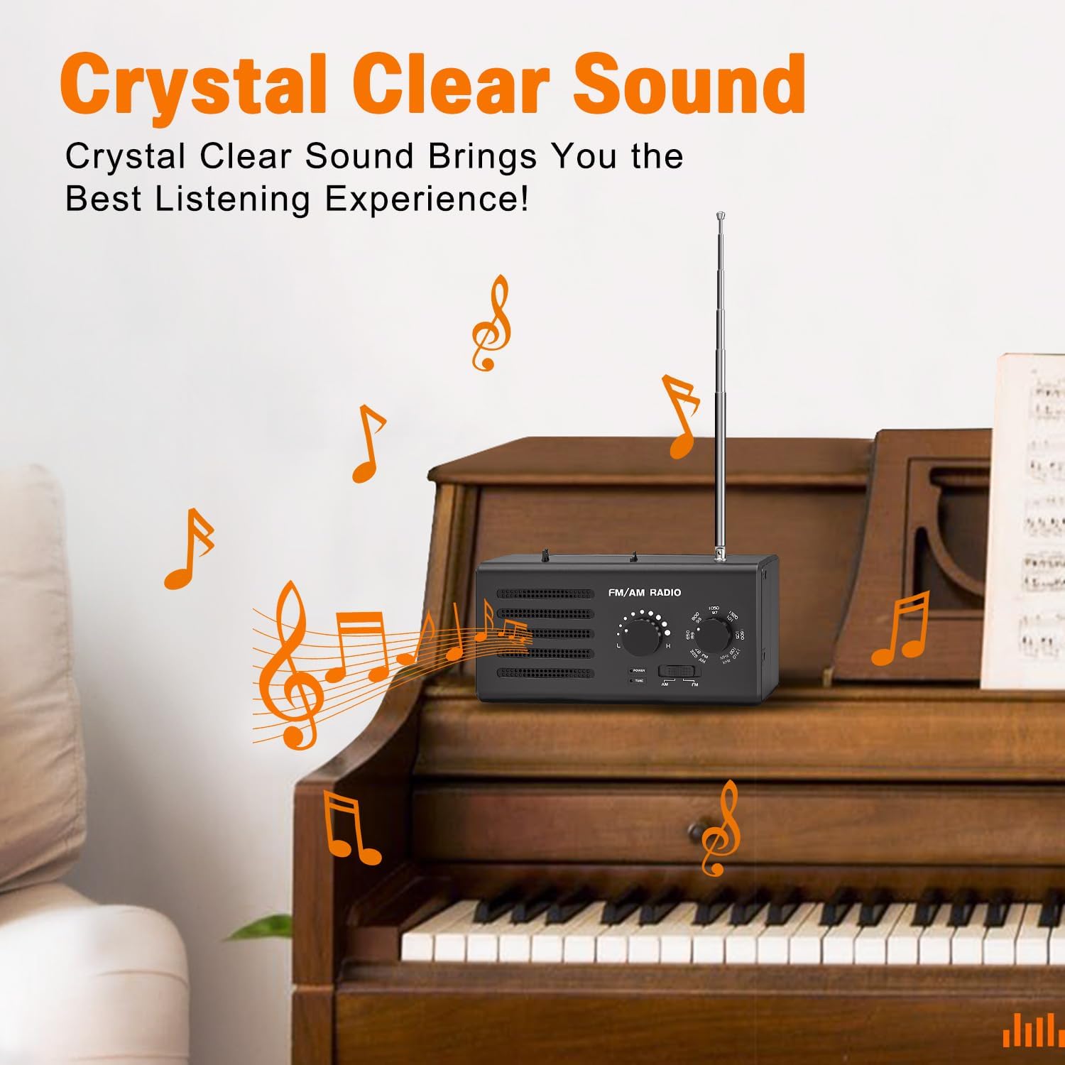 • FM/AM приема най-добрия звук - С DSP чипа против смущения, чувствителността на радиото може да бъде ефективно подобрена; с 6-делната въртяща се телескопична транзисторна антена, приемането е мощно и стабилно, така че можете да приемате любимите си предавания по всяко време. Поддържа FM (87-108MHz) и AM (522-1710KHz)