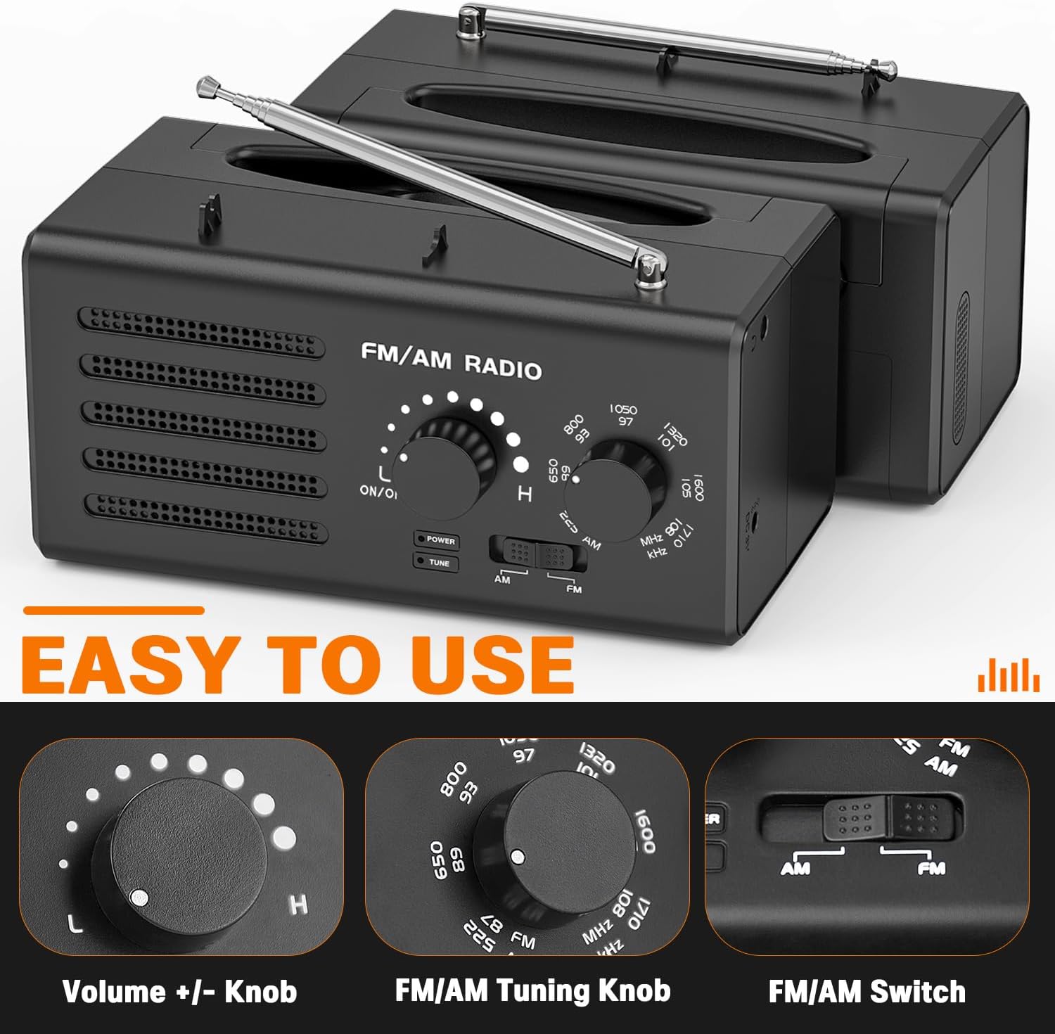 Транзисторно радио - преносимо AM FM радио с най-добър прием, вграден високоговорител, жак за слушалки, поддържа USB захранване/радио с батерии за дома/на открито/къмпинг (черно)