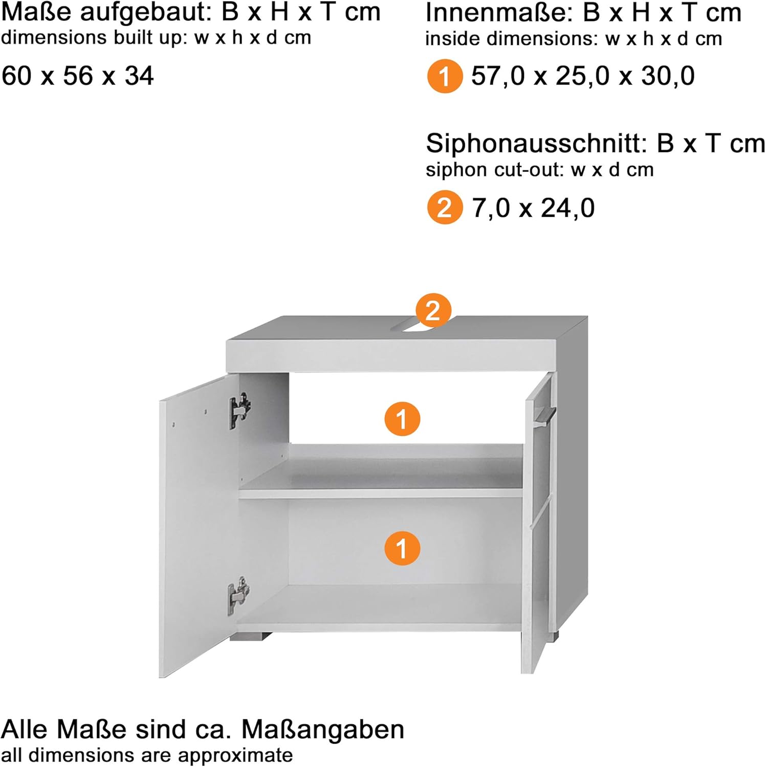 • Компактно и функционално решение - С размери (Ш x В x Д): 60 x 56 x 34 см, пасва под стандартни мивки и е идеален за малки до средни бани, компактни...