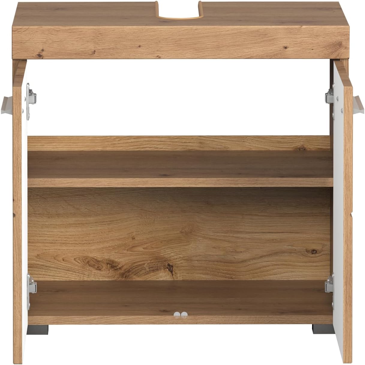 • Изтънчено разделение - Зад 2 врати, 1 рафт осигурява свободно място за съхранение на тоалетни принадлежности, перилни препарати или кърпи, така че всичко е лесно достъпно и спретнато прибрано.