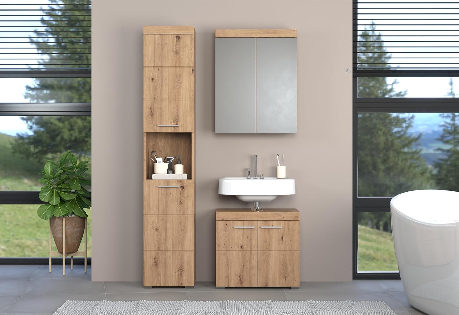 trendteam smart living - Amanda - Шкаф за баня - Дъбово дърво - 1 рафт - (Ш x В x Д) 60 x 56 x 34 см - Устойчив на надраскване
