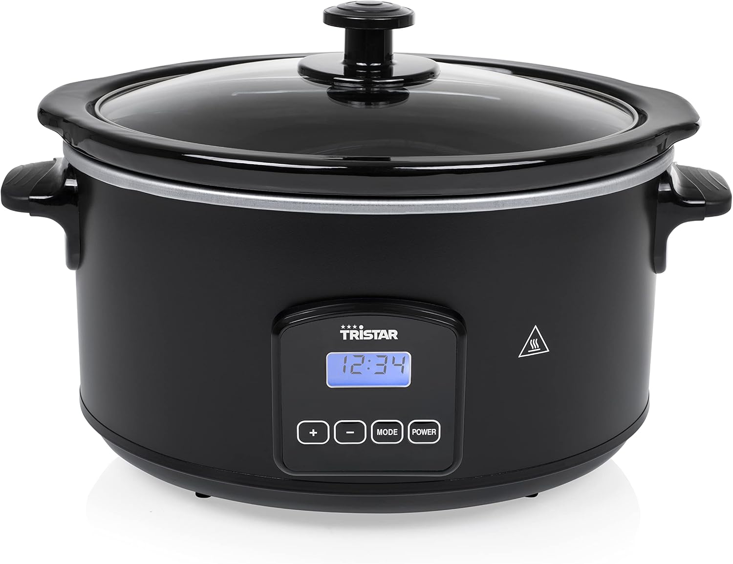 Просторната тенджера с обем 3,5 литра ви позволява да готвите четири порции едновременно. Представете си сочно свинско месо или пикантно агнешко къри за вашия партньор или семейство. Готварската печка Tristar има две степени на нагряване, така че можете да приготвите яхния за по-малко от три часа или да я оставите да се готви внимателно до 10 часа. Благодарение на функцията за затопляне, можете да поддържате всичко на температура до сервиране.