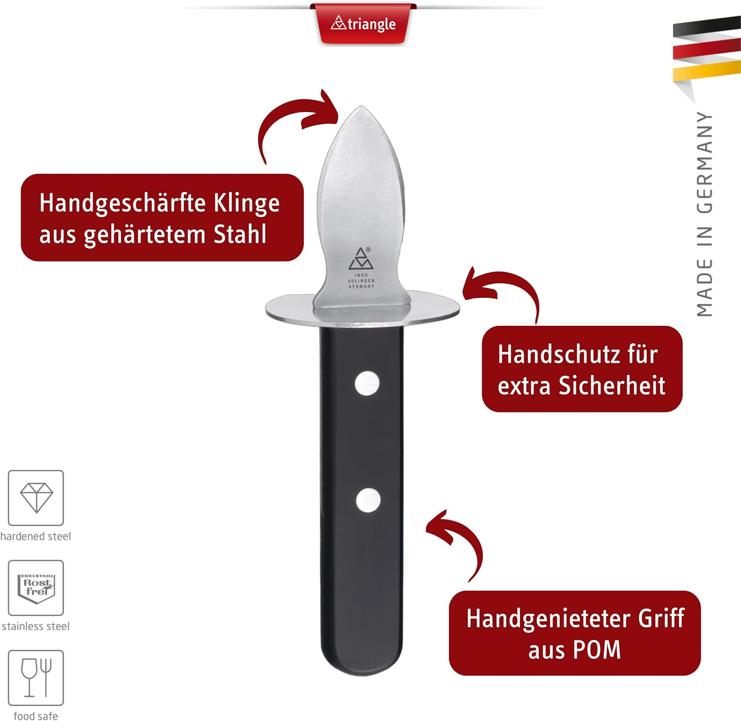 триъгълник 54 200 01 02 Отварачка за стриди, нитована, произведена в Солинген/Германия, професионално качество, професионален нож за стриди, неръждаема стомана, широко острие, предпазител за ръката