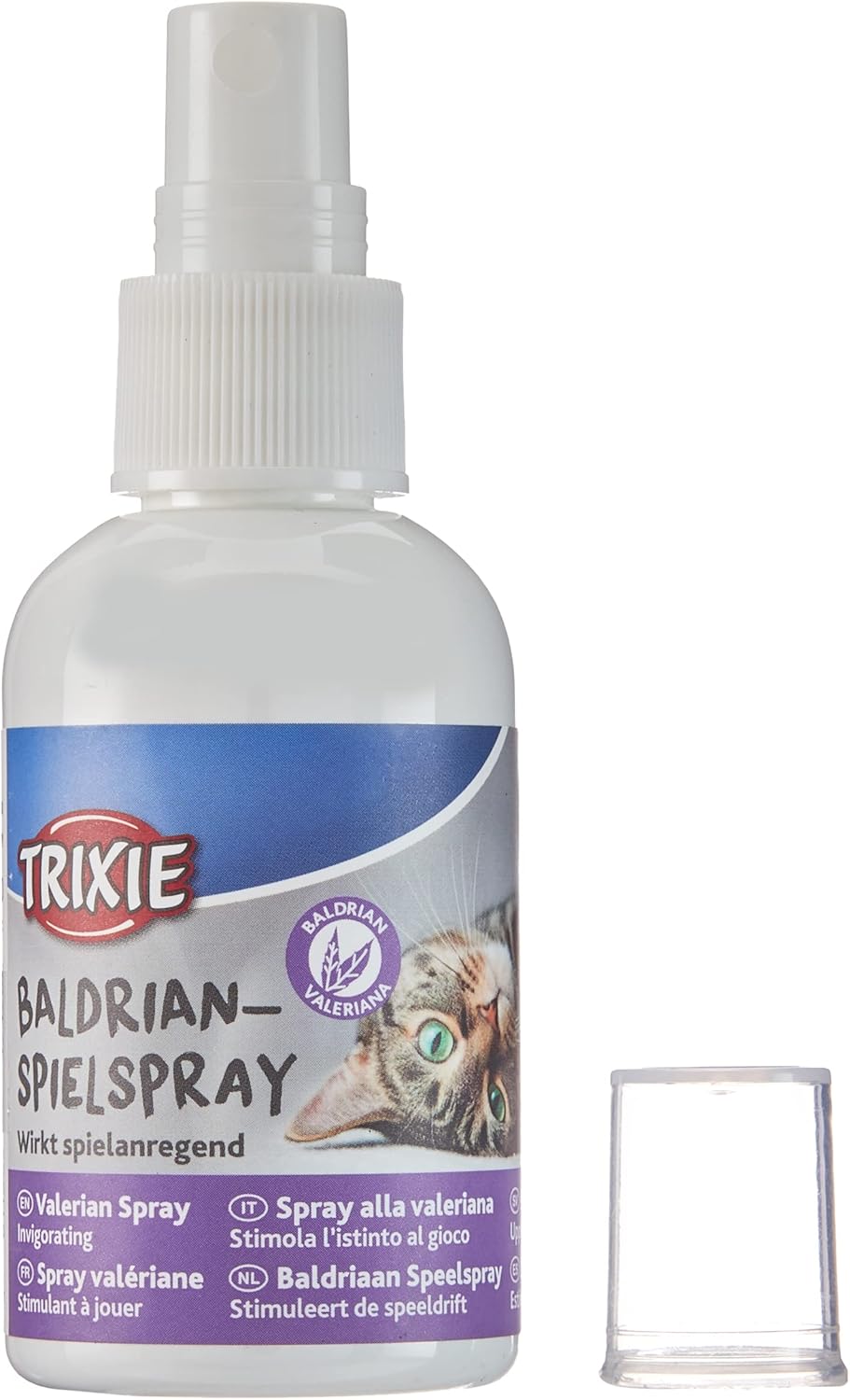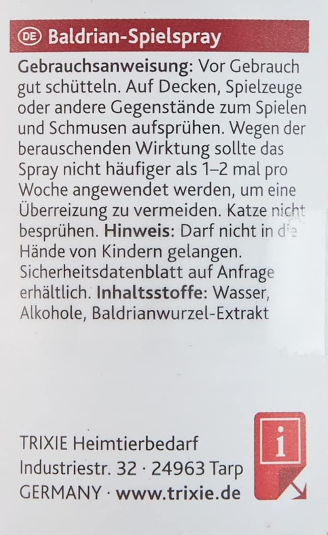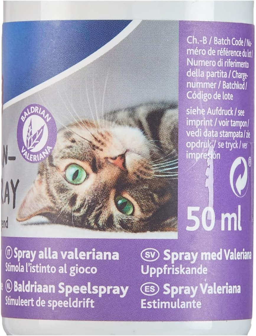 Спреят за игра с валериана е стимулиращ, опияняващ и еуфоризиращ за повечето котки благодарение на аромата на растителния екстракт. В зависимост от характера на вашата котка, той може също да успокои и да насърчи гушкането. Спреят за игра може да се използва върху котешки играчки, драскалки и подложки, както и върху драскалки.