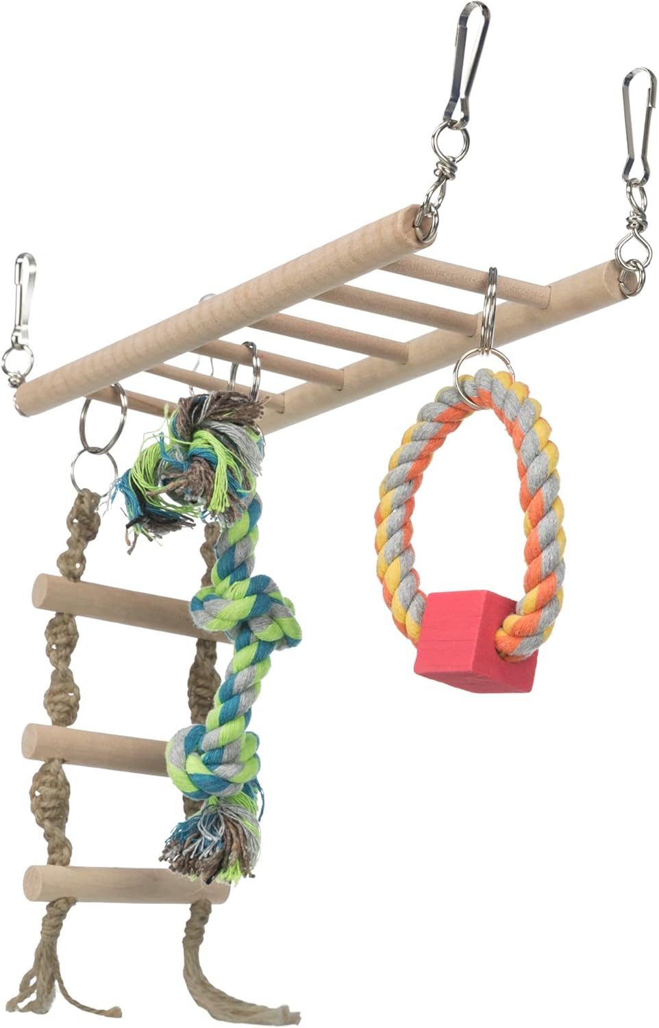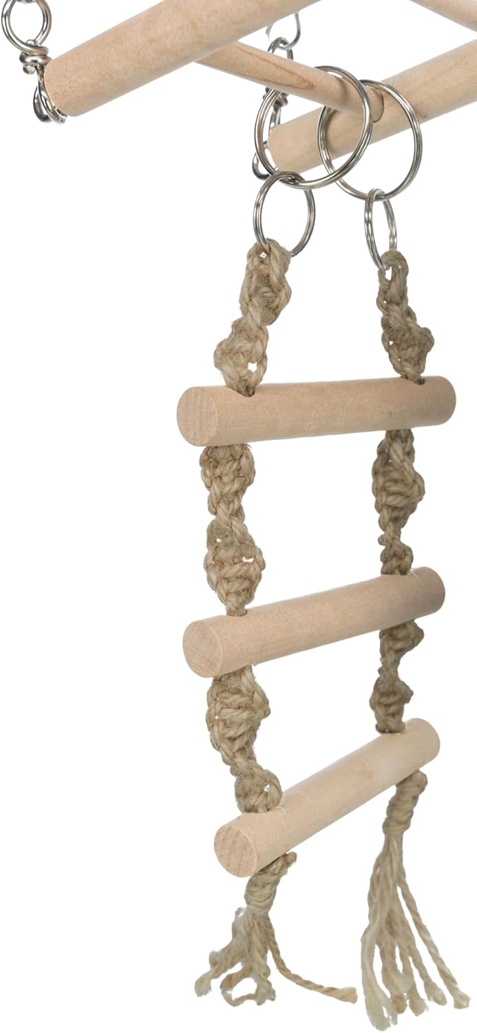 Дървена стълба с въжена стълба, памучно въже за игра и памучен пръстен с дървен блок