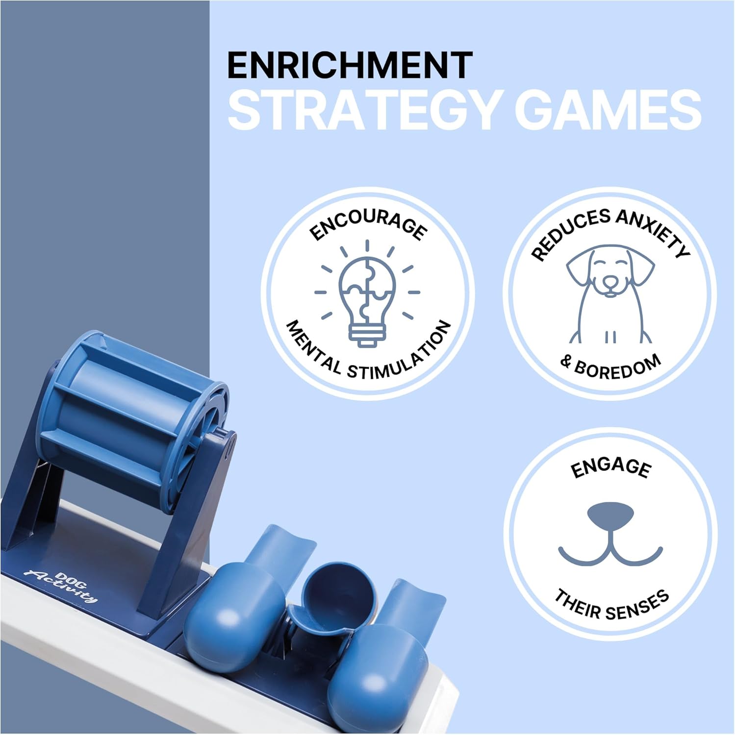Support your four-legged friend when he gets stuck on a task. This prevents frustration and strengthens your bond. Take into account the individual skills of your dog and choose the appropriate level of difficulty. Our strategy toys are divided into three levels, from light to medium to heavy to suit all furry noses. After all, the toy should also meet the personal preferences of your dog, so that the playing pleasure is optimal.