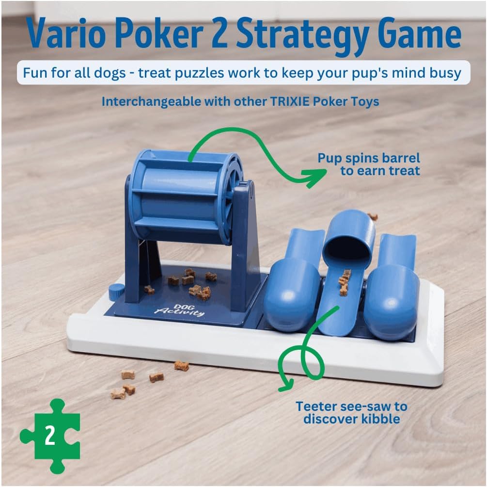 Стратегическата игра за кучета от TRIXIE е вълнуваща настолна игра, която предлага на вашия четириног приятел когнитивни предизвикателства. С четири променливо разположени игрови елемента, играта винаги остава вълнуваща и предизвикателна. Благодарение на съвместимостта с други игри с покер, можете да разширите репертоара на играта и да давате на кучето си нови тактически задачи отново и отново. Неплъзгащите се гумени крачета осигуряват стабилност, дори в разгорещени рундове.